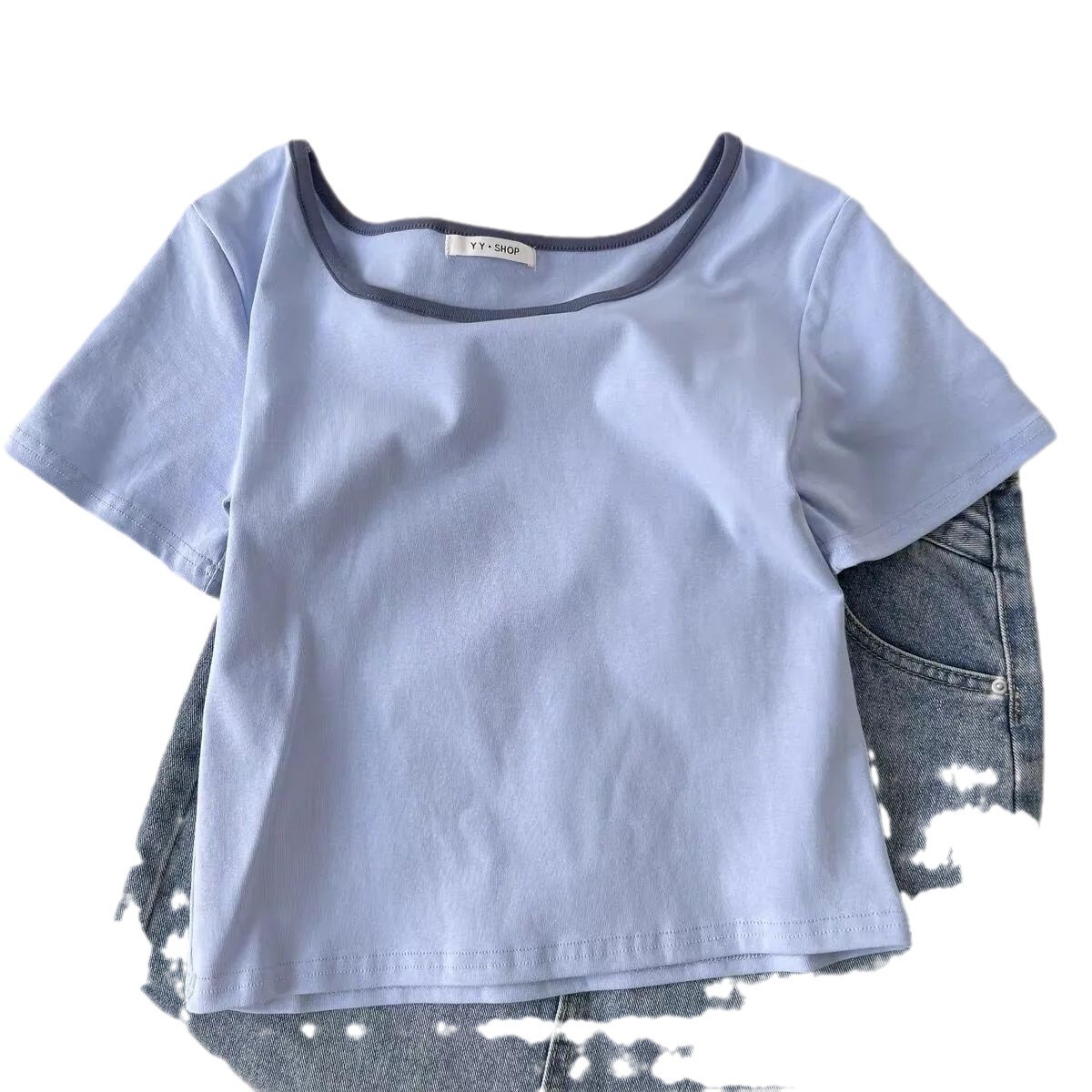 Футболка с квадратным вырезом на плече для женщин с короткими рукавами