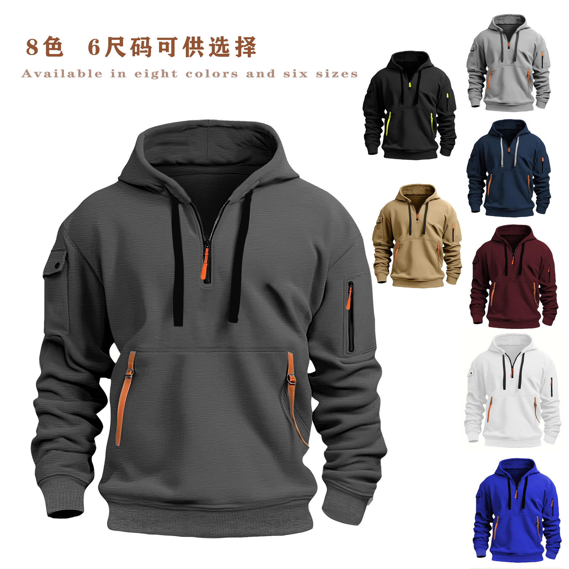 Главная страница > Трансграничный новый стиль большой размер весенний и осенний мужской свитер толстовка с капюшоном на молнии многокарманный пуловер мужской спортивный повседневный пиджак