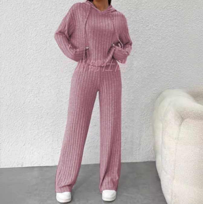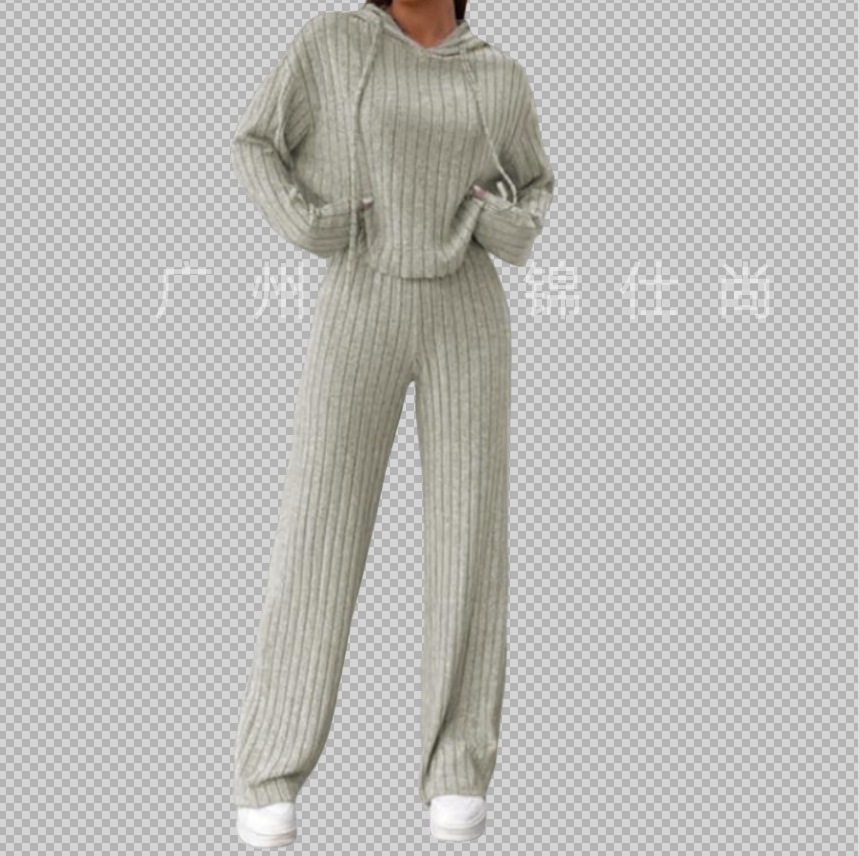 Главная страница > Трансграничная европейская и американская внешняя торговля весна и осень новый повседневный трикотаж в полоску с капюшоном свитера свободные брюки с длинными рукавами женские костюмы