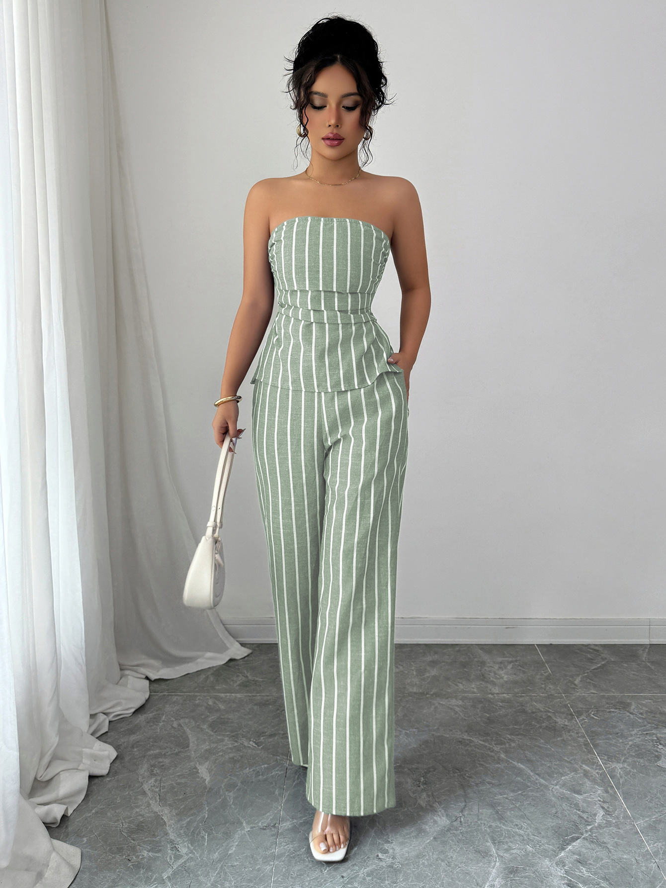 Главная страница > Модный и элегантный женский костюм-двойка без бретелек в полоску для трансграничной торговли, весна-лето 2025, Amazon, немнущийся и комфортный