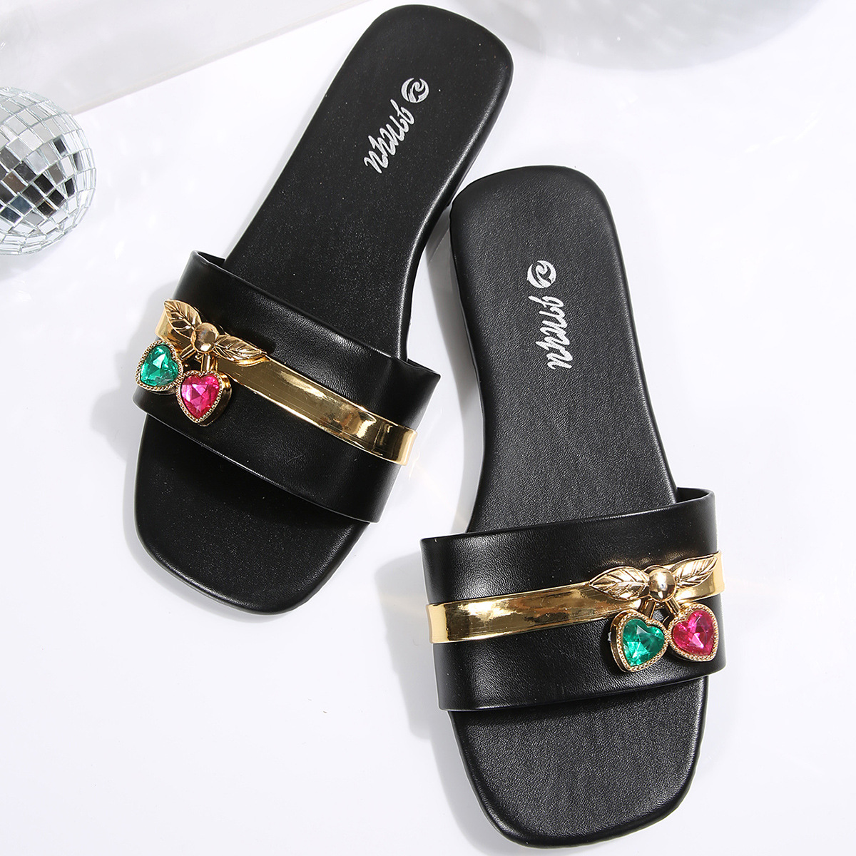 Женские туфли для международной торговли, женские тапочки, элегантные однотонные сандалии на плоской подошве с металлическим декором и квадратным носком, удобные, повседневные, легкие и комфортные.