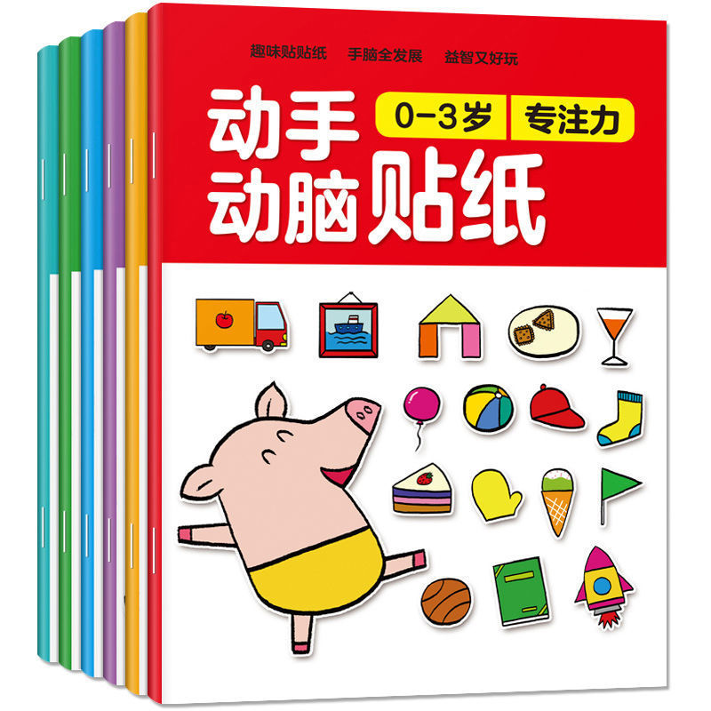 Книга с наклейками для развития когнитивных навыков для детей от 0 до 3 лет, всего 6 томов