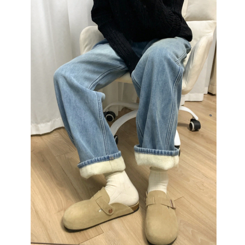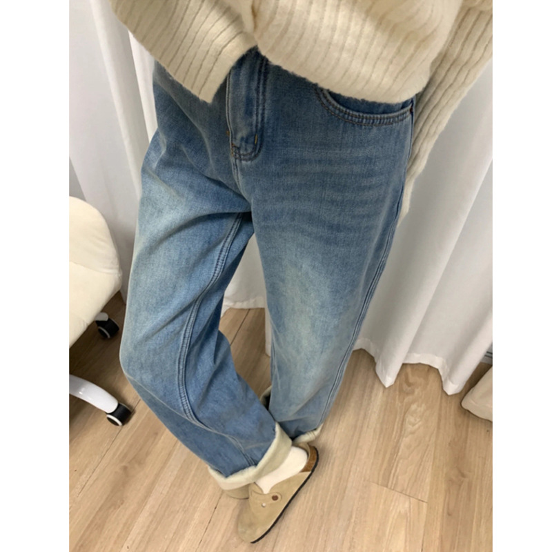 Плюшевые толстые прямые джинсы Женская зима популярна в этом году