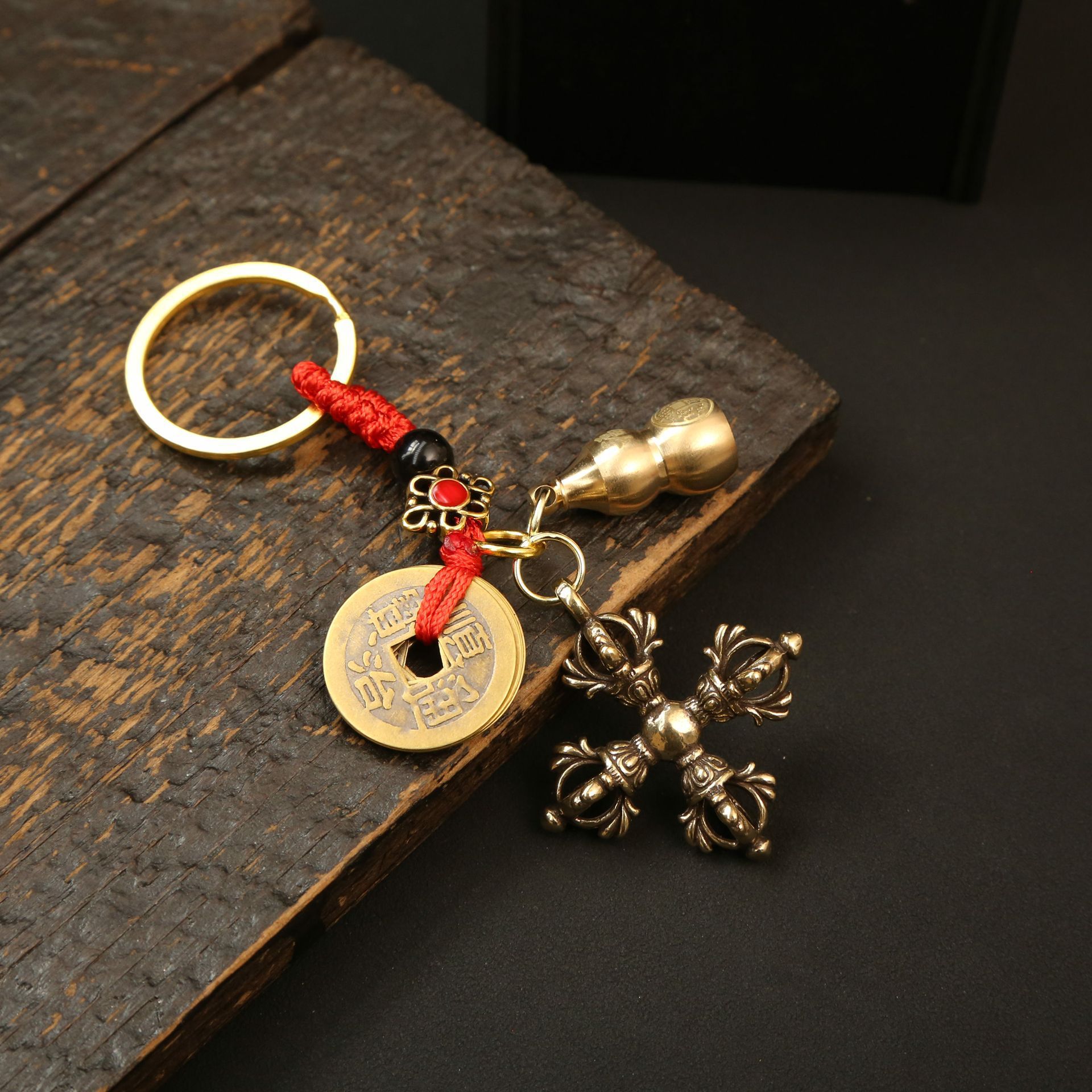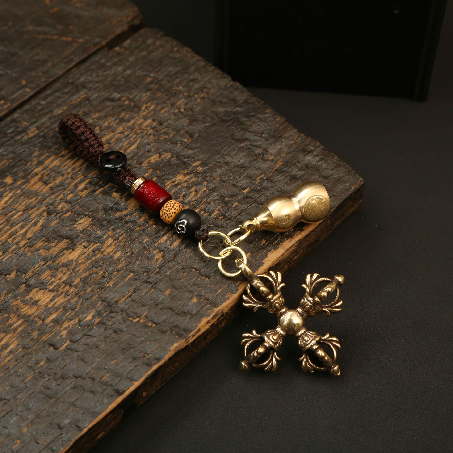 Главная страница > Латунный крест Лотос Ваджра с ключницей-подвеской для мужчин и женщин, держатель для ключей от сумки и автомобиля, медное ремесло.
