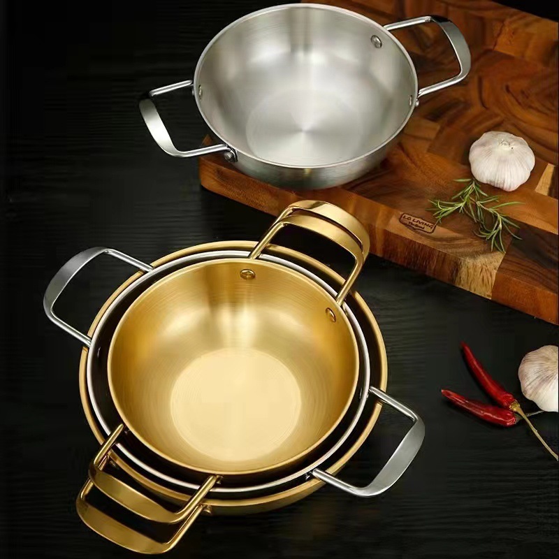 Главная страница > Горшок для лапши быстрого приготовления из нержавеющей стали в Корейском стиле Золотая Лапша для морепродуктов рамен небольшой суповой горшок Интернет лапша быстрого приготовления знаменитостей двойной ухо горшок для морепродуктов