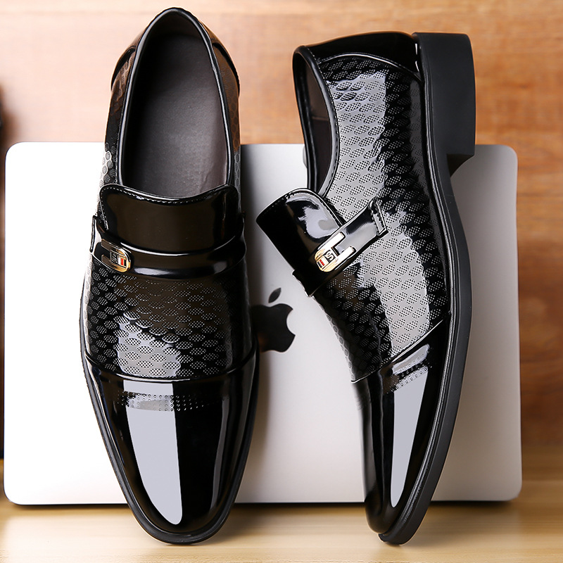 Главная страница > Мужская обувь Повседневная обувь Молодежная мужская одежда модная кожаная обувь бизнес-стиль в стиле Гонконга с лаком остроконечный скользкий набор ножки большой размер