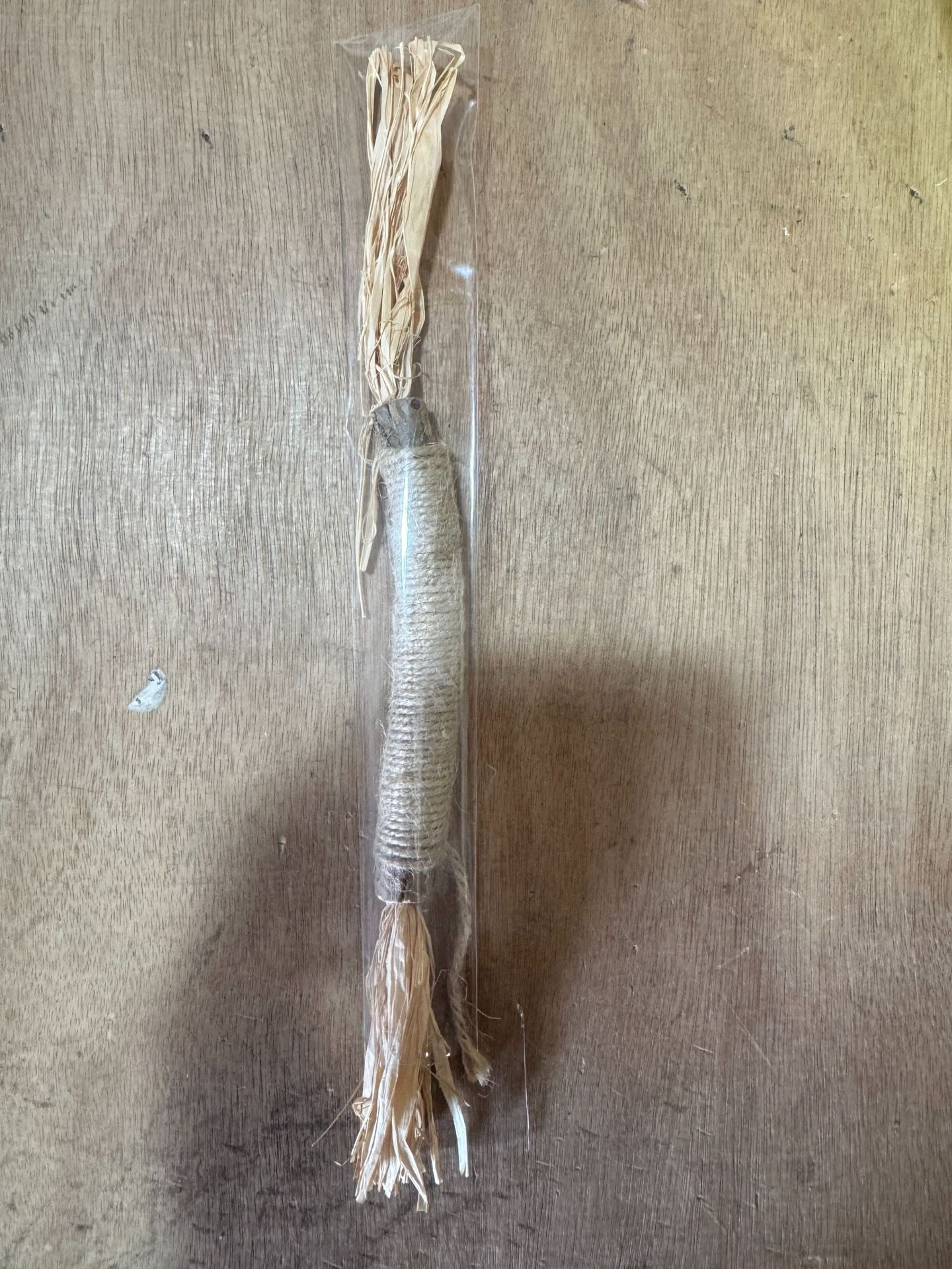 1 деревянный полигонум 22 см + рыбка из джутовой ткани + большая морковка из папиросной бумаги + изысканный мятный шарик + маленький колокольчик