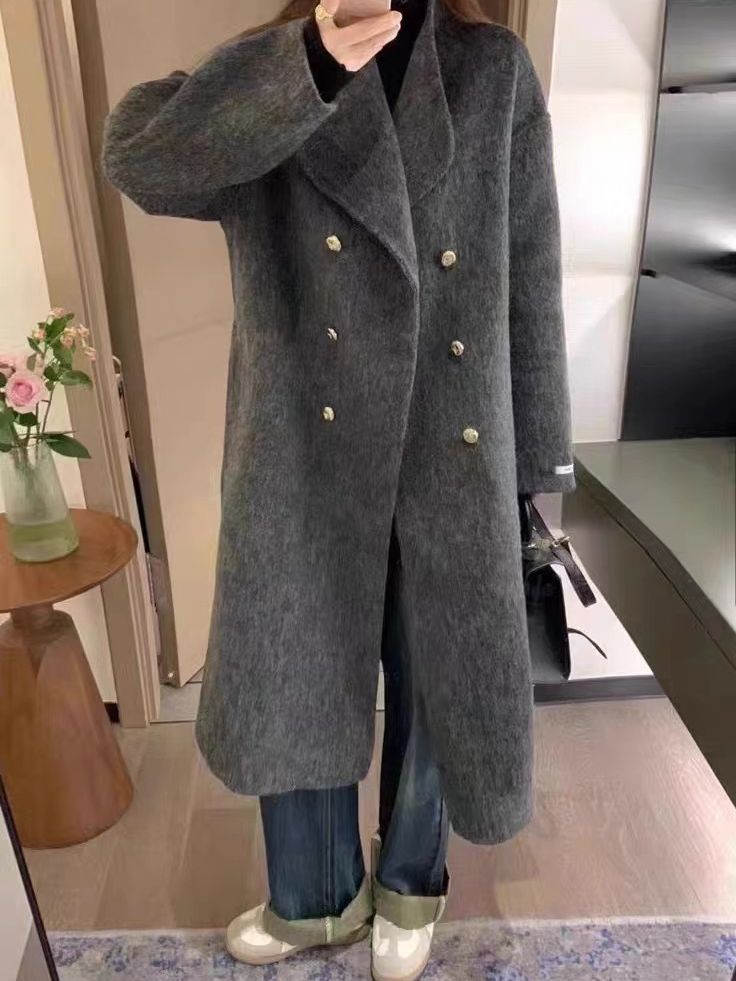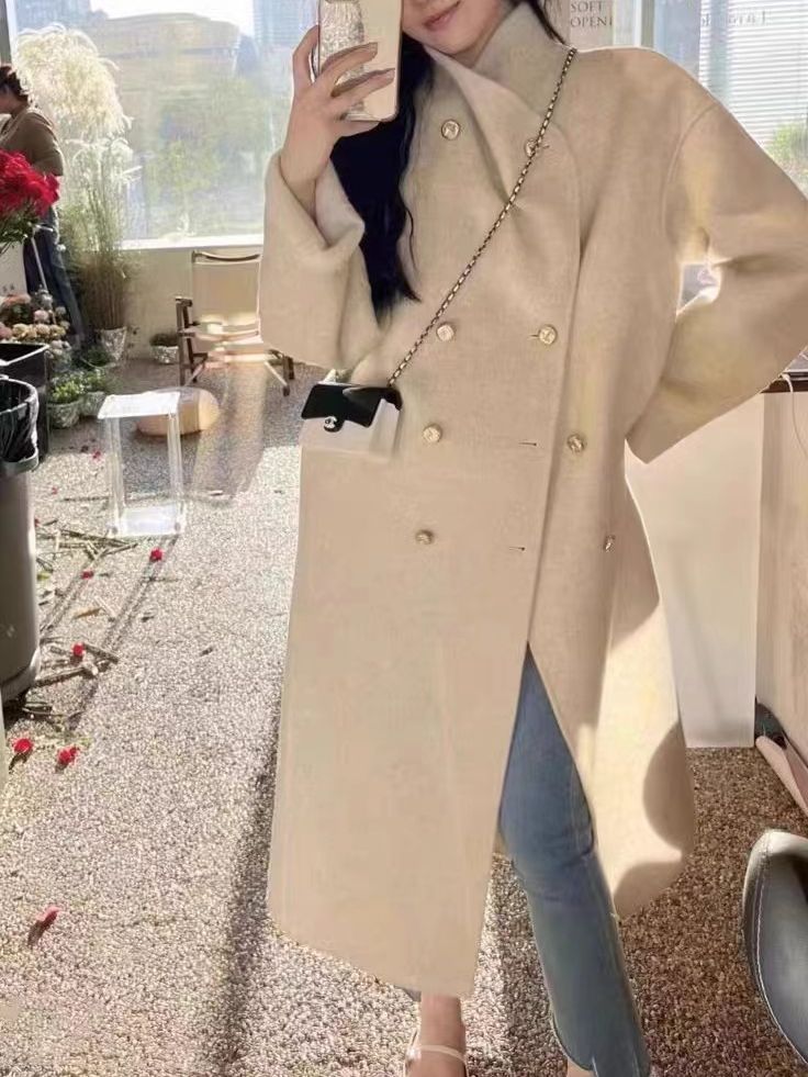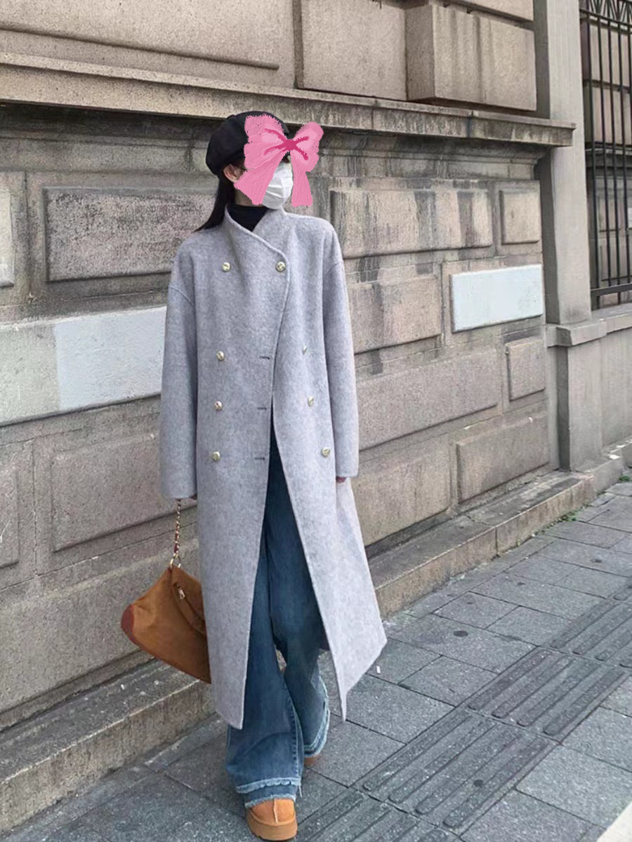 Главная страница > Новое высококачественное двустороннее шерстяное пальто с воротником-стойкой, нежно-серое, для женщин, осенне-зимнее, утепленное