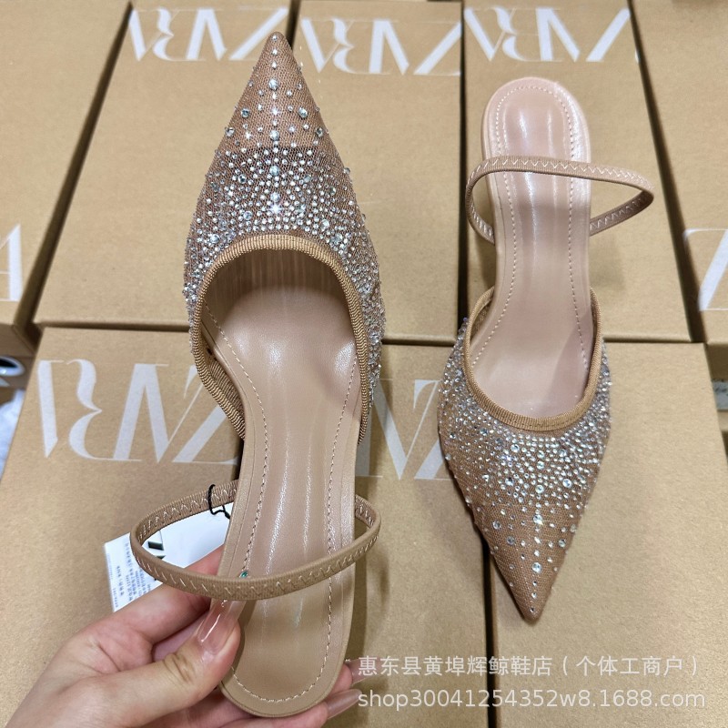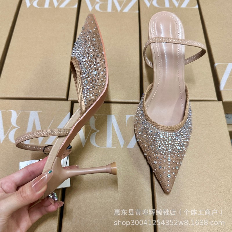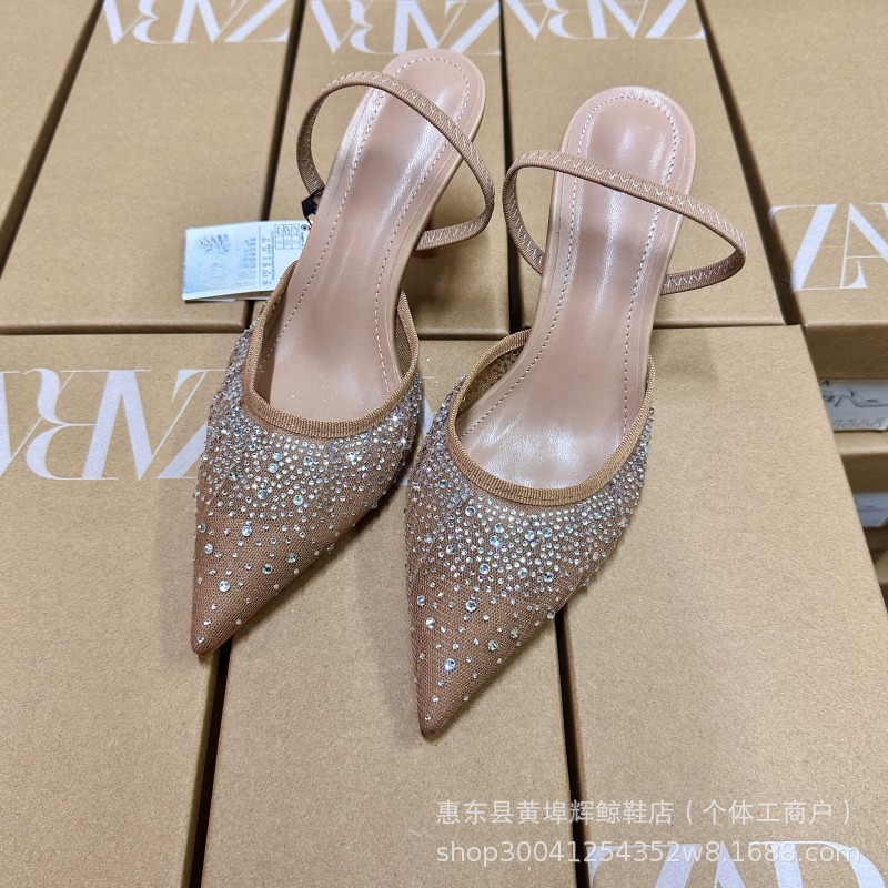 Главная страница > Лето 2024, женская обувь ZA, яркие сетчатые туфли на высоком каблуке со стразами, темпераментные сандалии на шпильке с открытым каблуком и острым носком, супер высокие каблуки