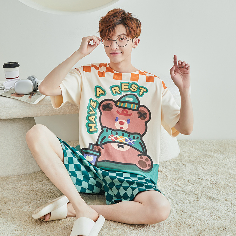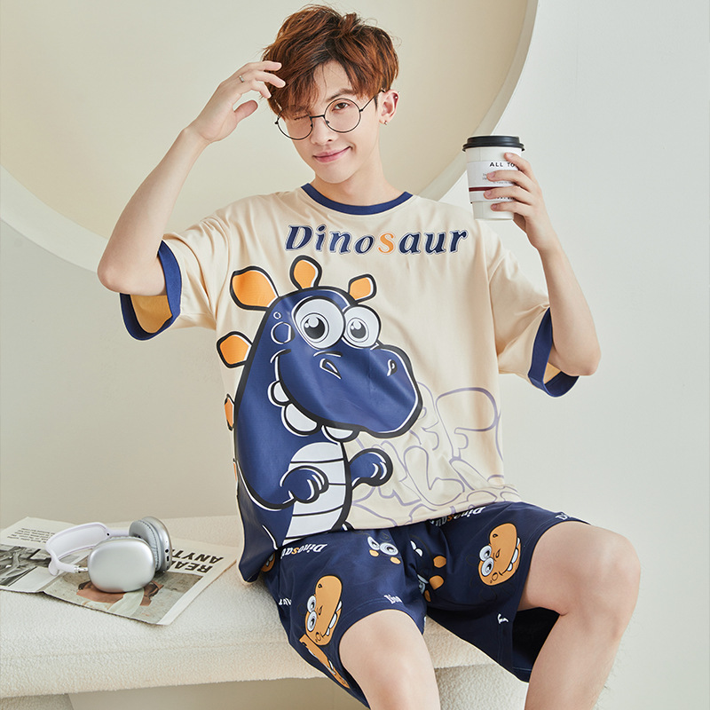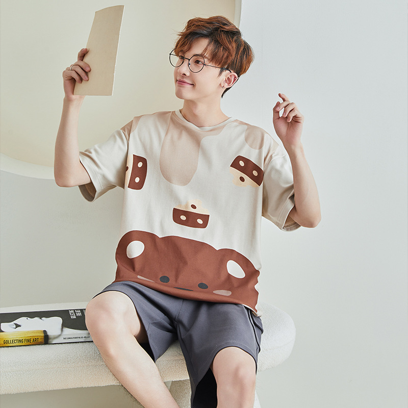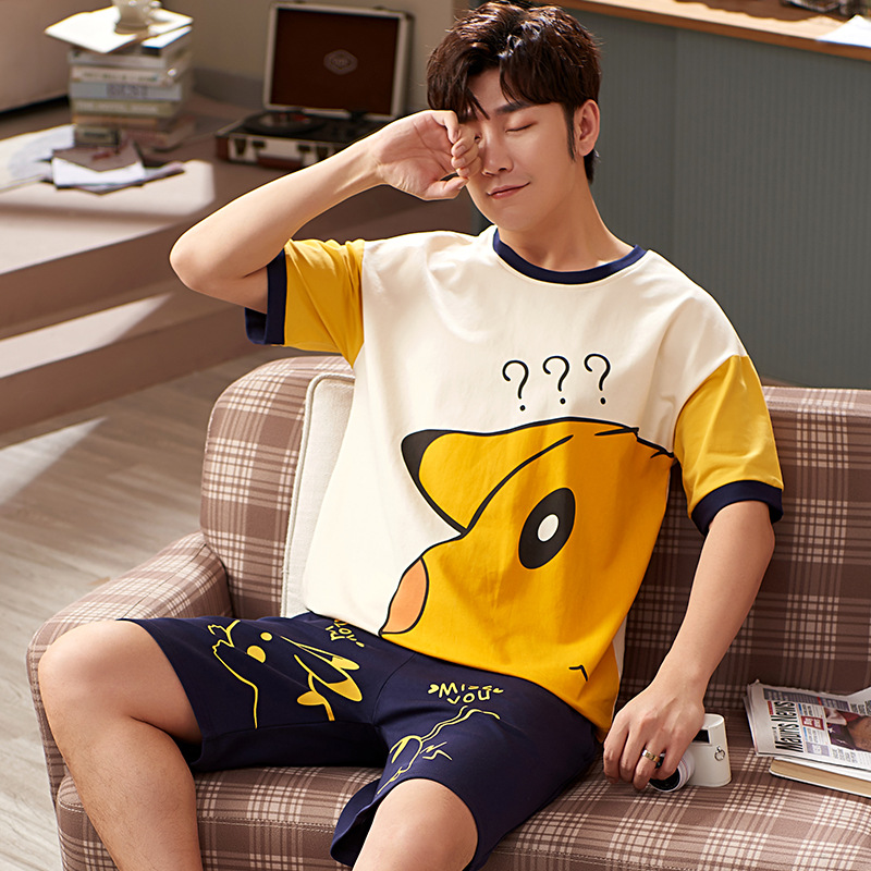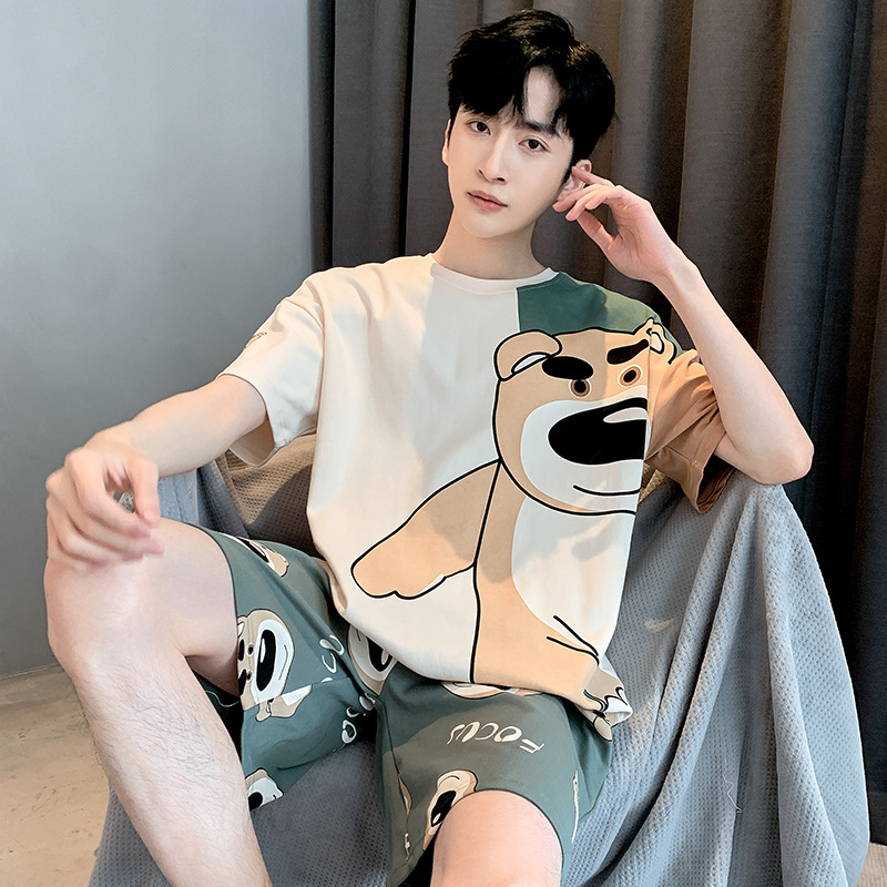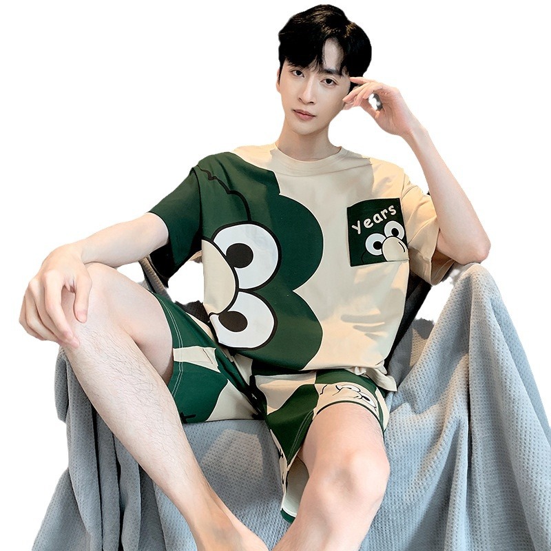 Пижама для мужчин летом тонкий хлопок с короткими рукавами плюс большой размер молодежный мультфильм можно носить на улице