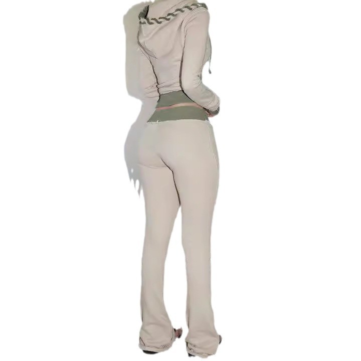 Главная страница > Европейская и американская мода, цветной пояс, лоскутная расклешенная вязаная толстовка, облегающие спортивные штаны, повседневные длинные брюки, комплект