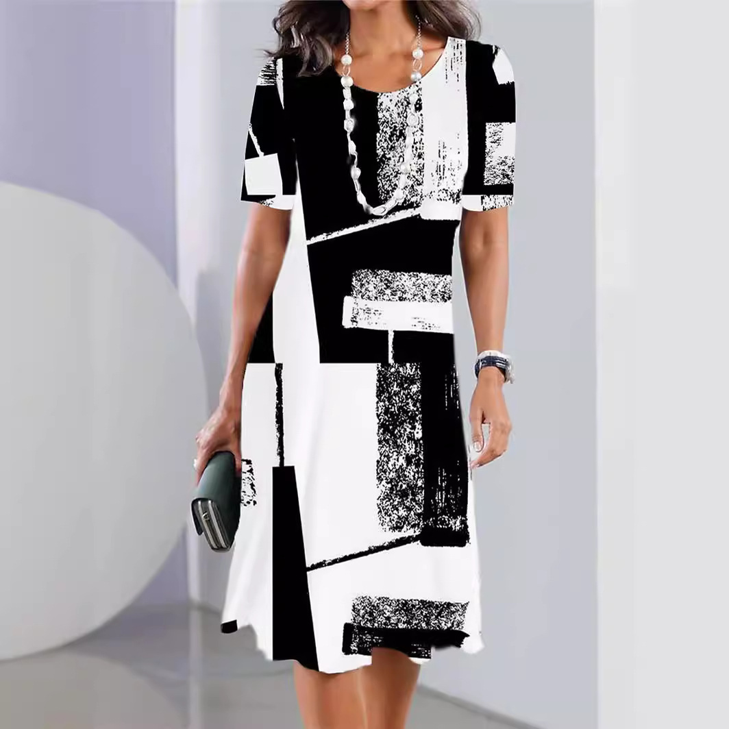 2023 Европейские и американские трансграничные модели большие размеры геометрических блоков с круглым вырезом мини-модное платье