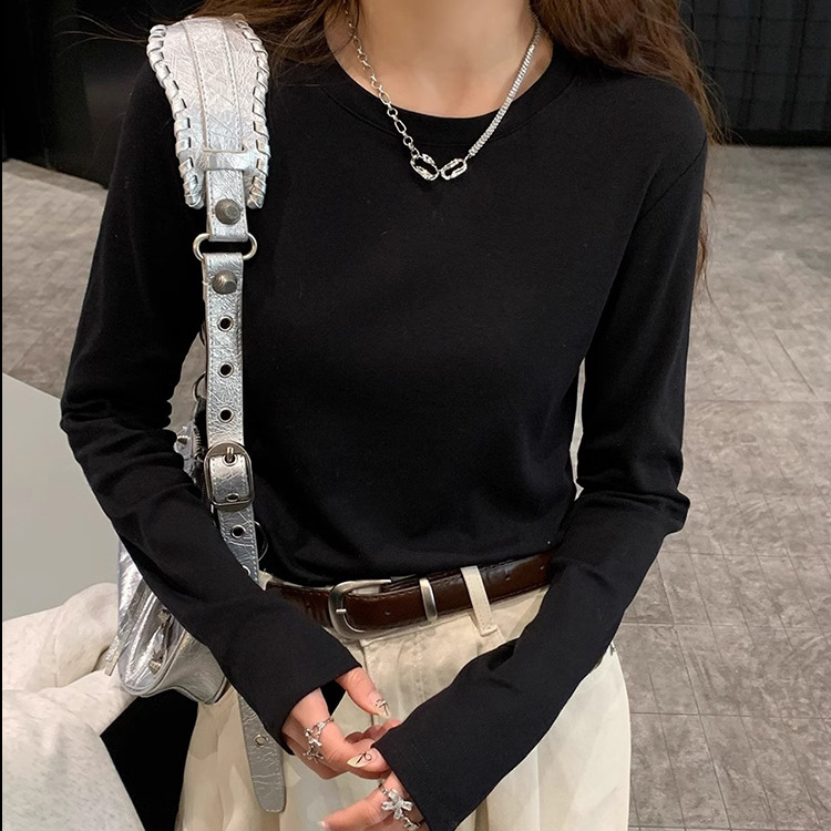 Главная страница > 300 г с круглым вырезом белая рубашка с длинными рукавами рубашка футболка женская весна и осень свободная хлопковая рубашка рубашка