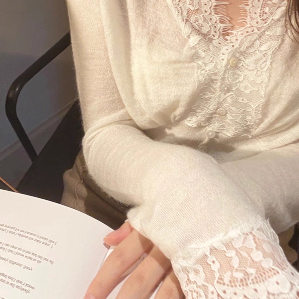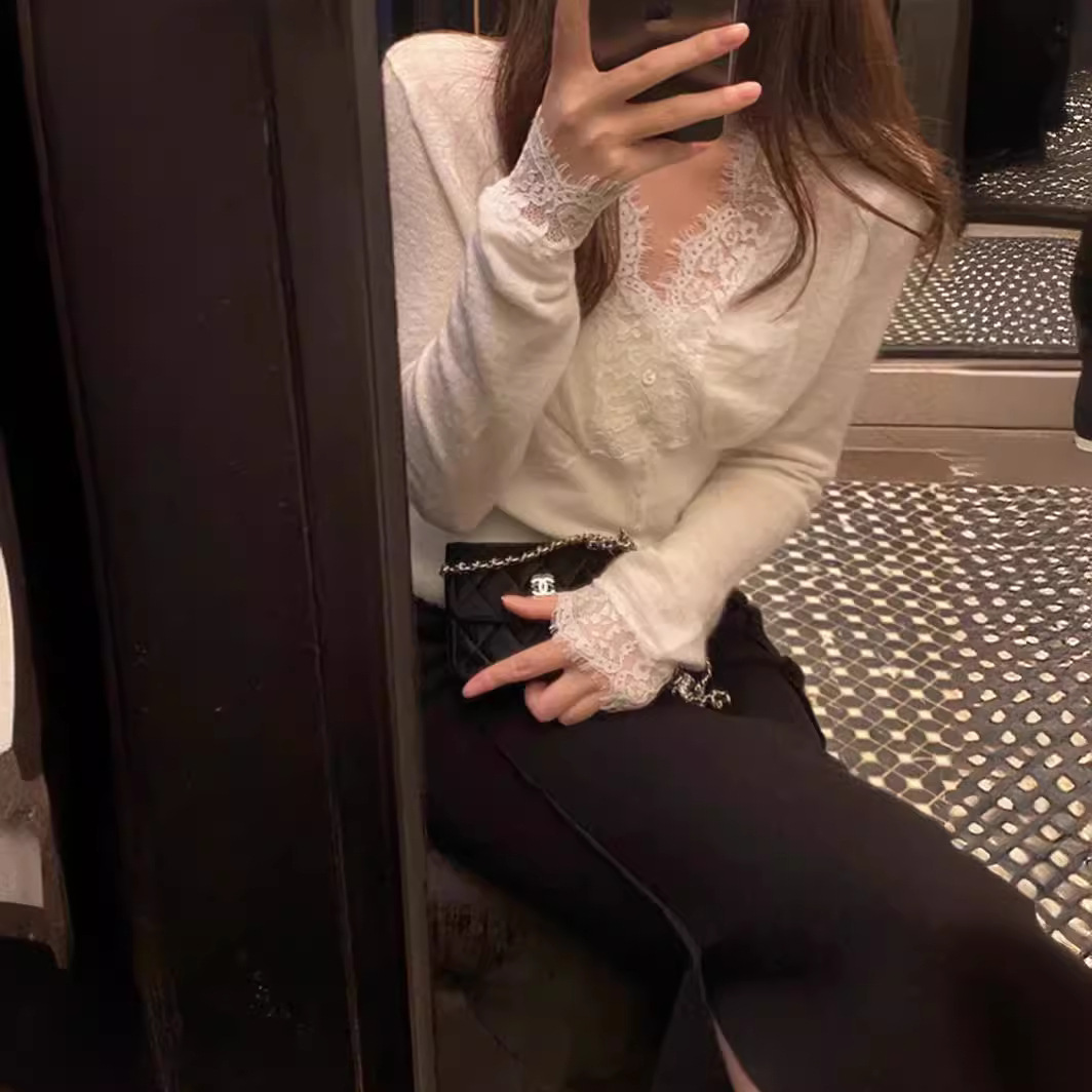 Главная страница > Белый кружевной вязаный свитер с V-образным вырезом, Женский Осенний высококачественный уникальный красивый внутренний свитер, Базовая рубашка