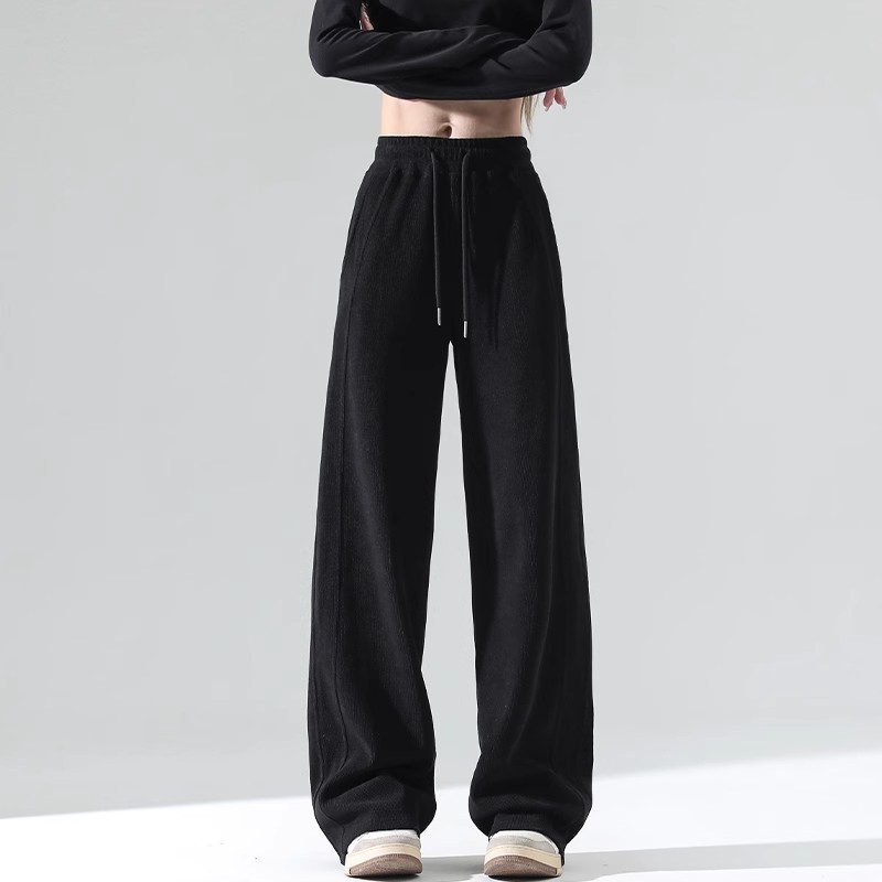 [Весна и осень] Чистые широкие брюки — черные — длина брюк 100 см.