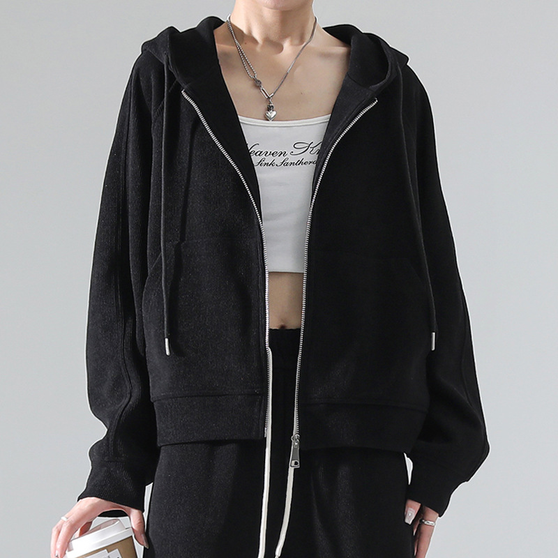[Весна и осень] Чистые широкие брюки — черные — длина брюк 90 см.