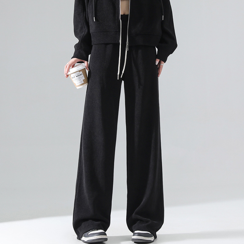 [Весна и осень] Чистые широкие брюки — черные — длина брюк 105 см.