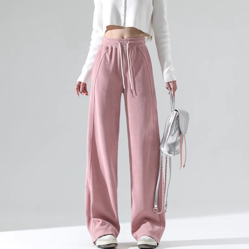 [Весна и осень] Широкие брюки lulu-розовые-маленькие