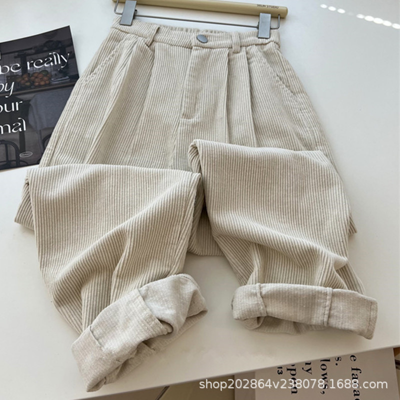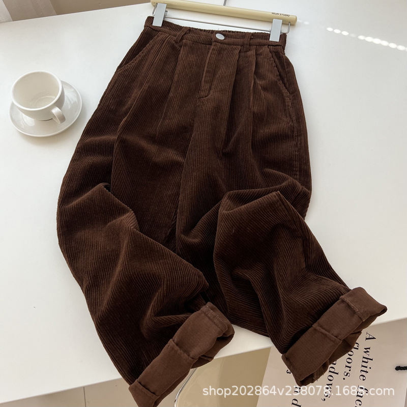 Главная страница > Вельветовые широкие брюки, женские осенне-зимние новые бриджи в Корейском стиле, утолщенные свободные шаровары, универсальные Повседневные Брюки Для Похудения