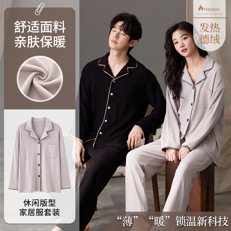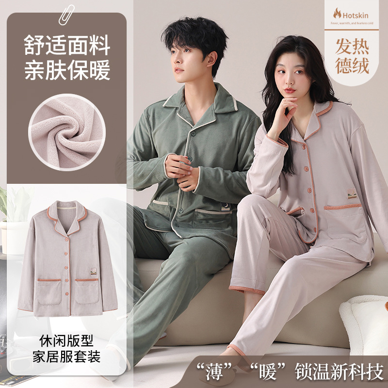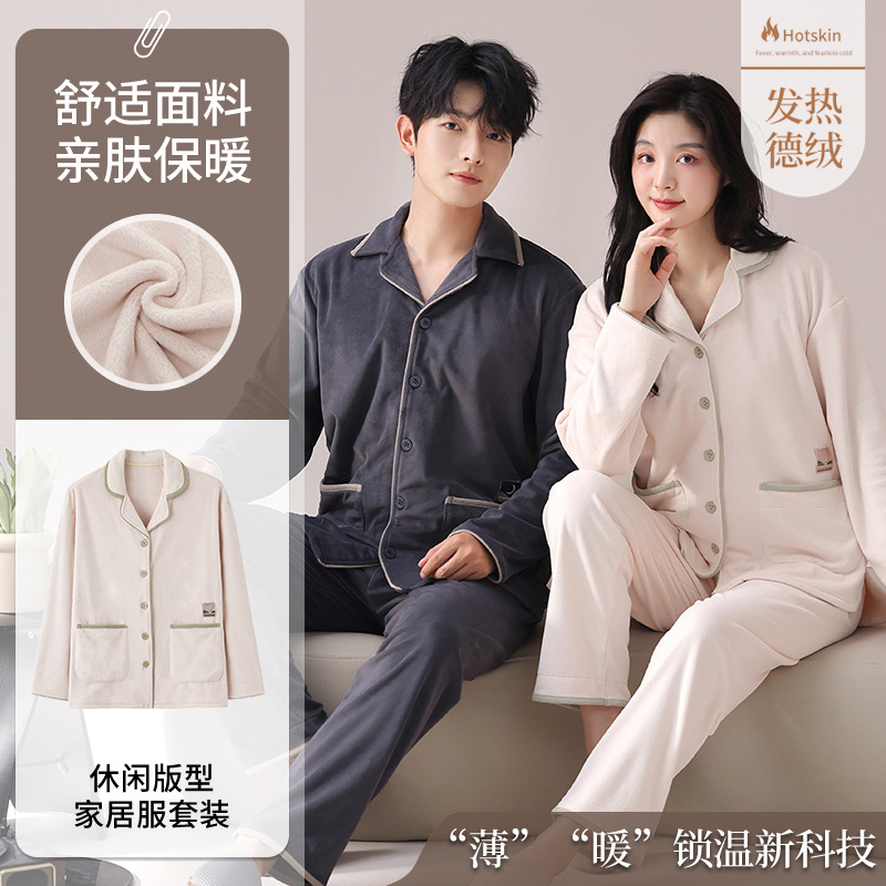 Главная страница > Пара пижамы женские осенние и зимние кашемировые костюмы с длинными рукавами кардиган зимой тонкая бархатная мужская теплая плюс домашняя одежда большого размера