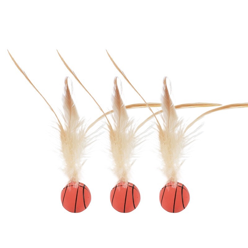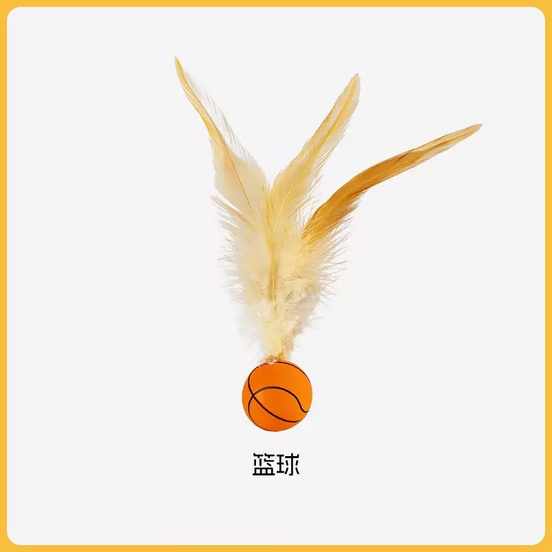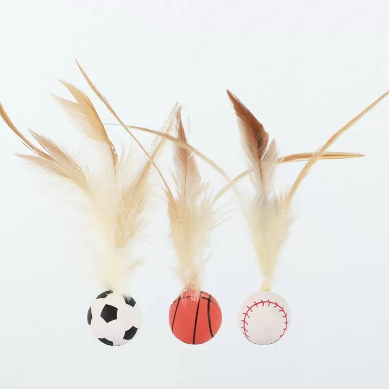 Эластичный мяч с перьями для кошек, игрушка для самостоятельных игр, снятие скуки, интерактивный мяч для метания, спортивный мяч с перьями, креативная игрушка для кошек и домашних животных