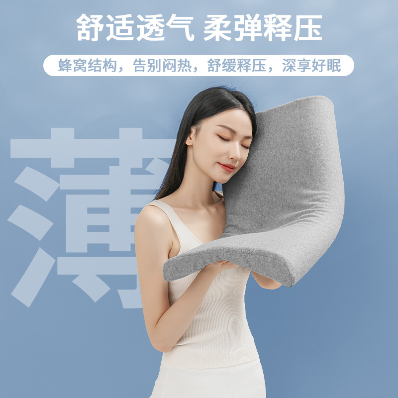 Низкая тонкая подушка 8 см - улучшенная ткань, устойчивая к клещам, бесплатная (ткань класса А) наволочка из молочного бархата и серого цвета
