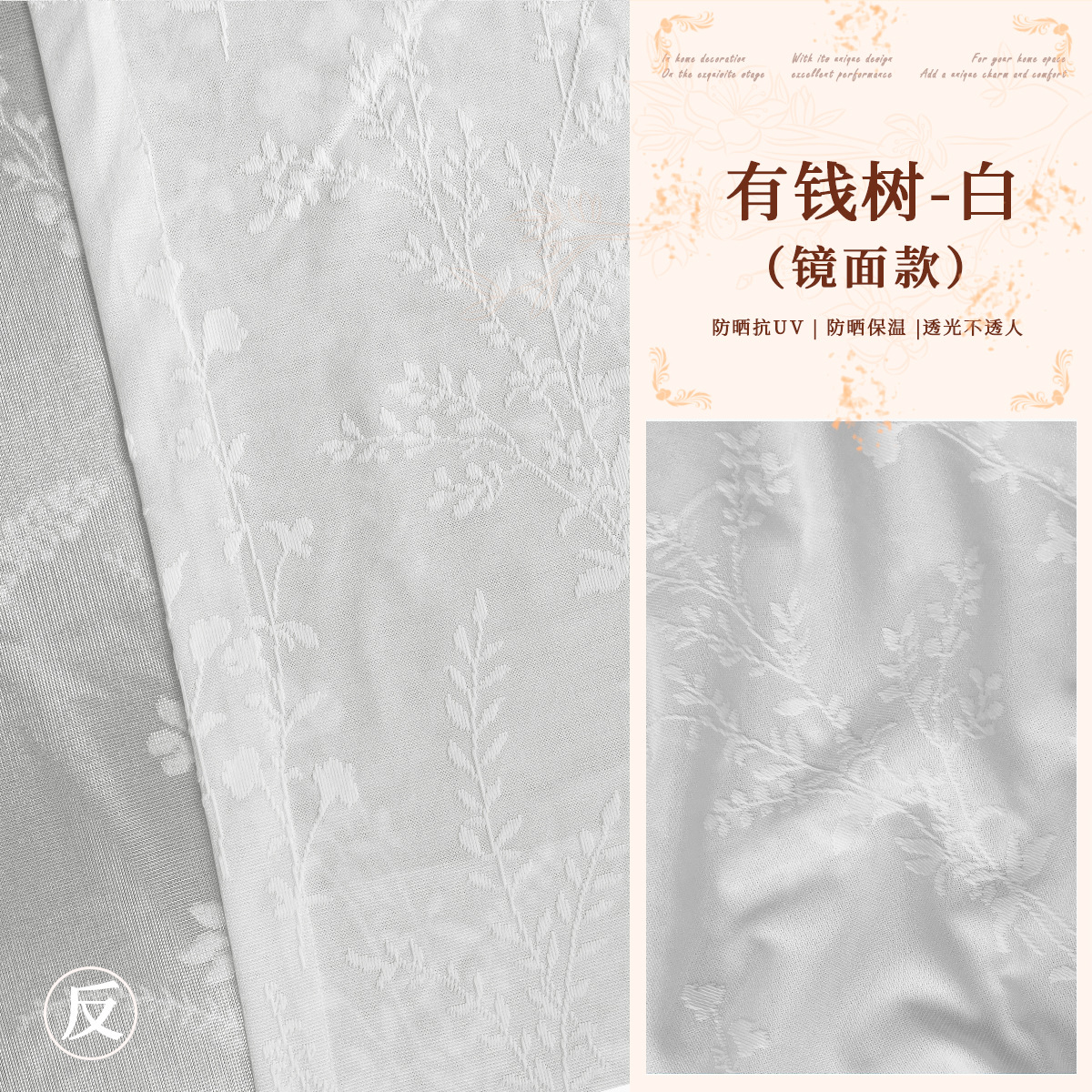Французское светопропускающее непрозрачное зеркало с вырезом лунной тени, ветка оконного экрана, изоляционный козырек, защита от солнца, гостиная, балкон, оконный экран, готовый продукт