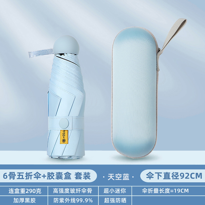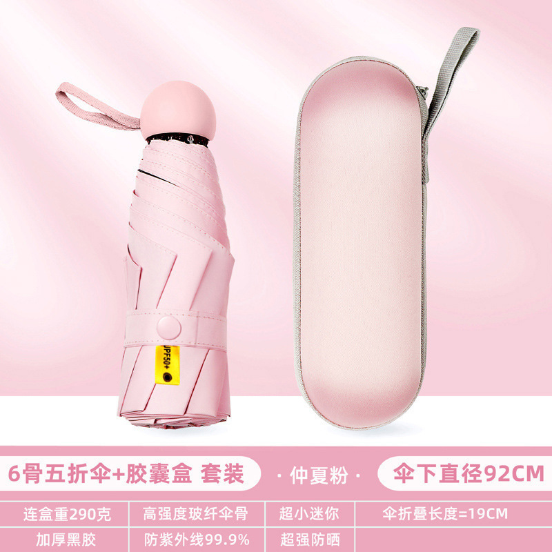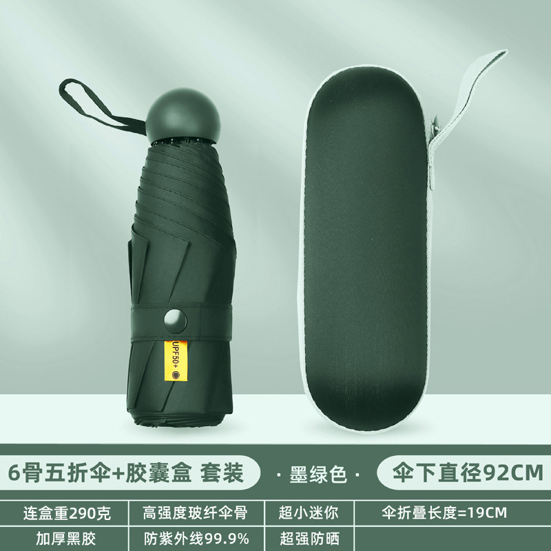 Оптовая мини-капсульный Зонт Пятислойный Зонт Женский портативный карманный черный клей солнцезащитный Зонт Солнечный дождь Двойной открытый солнцезащитный зонт