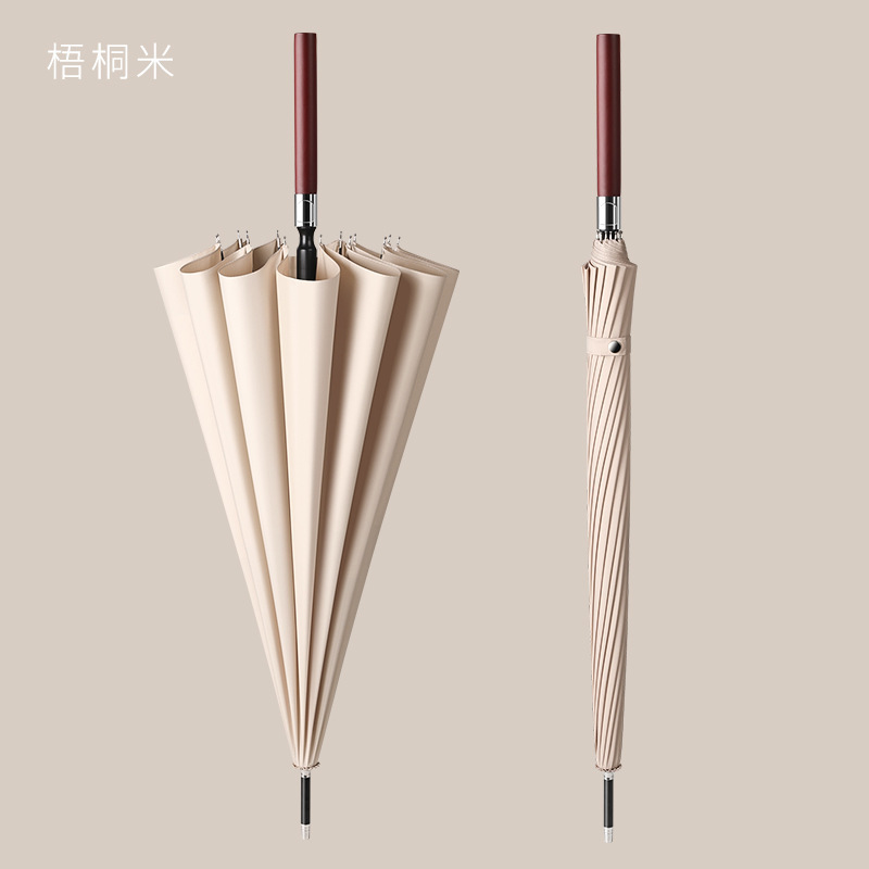 Длинная деревянная ручка [16 ребер] - бежевая (минимум 10 ручек зонтика с гравировкой)