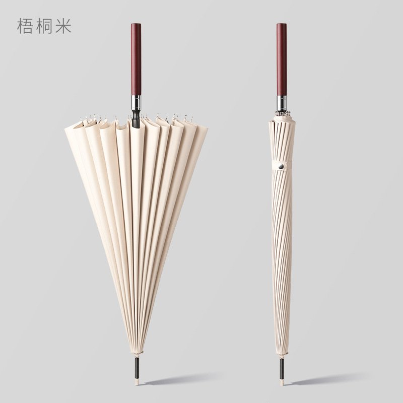 Длинная деревянная ручка [24 ребра] - бежевая (минимум 10 ручек зонтика с гравировкой)