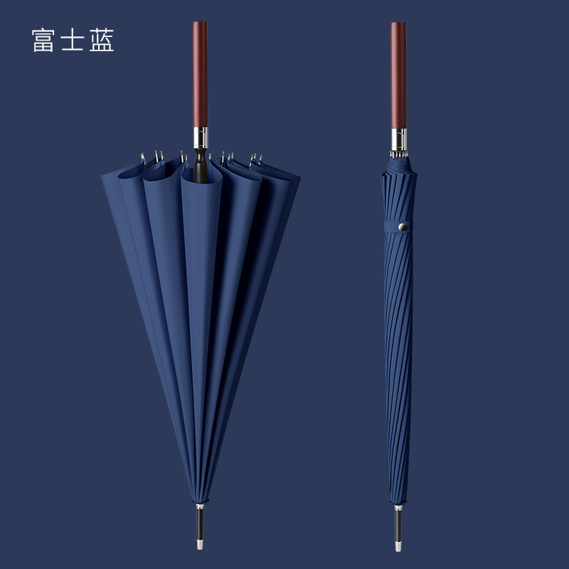 Длинная деревянная ручка [24 ребра] - темно-синяя (ручки зонтов с 10 и более ручками, выгравированными примечаниями)