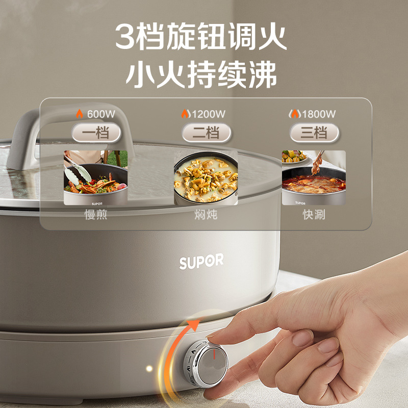Электрическая сковорода-мультиварка Supor для дома, электрическая сковорода для жарки, кастрюля, вок, для барбекю, многофункциональная, большая емкость H60YK882