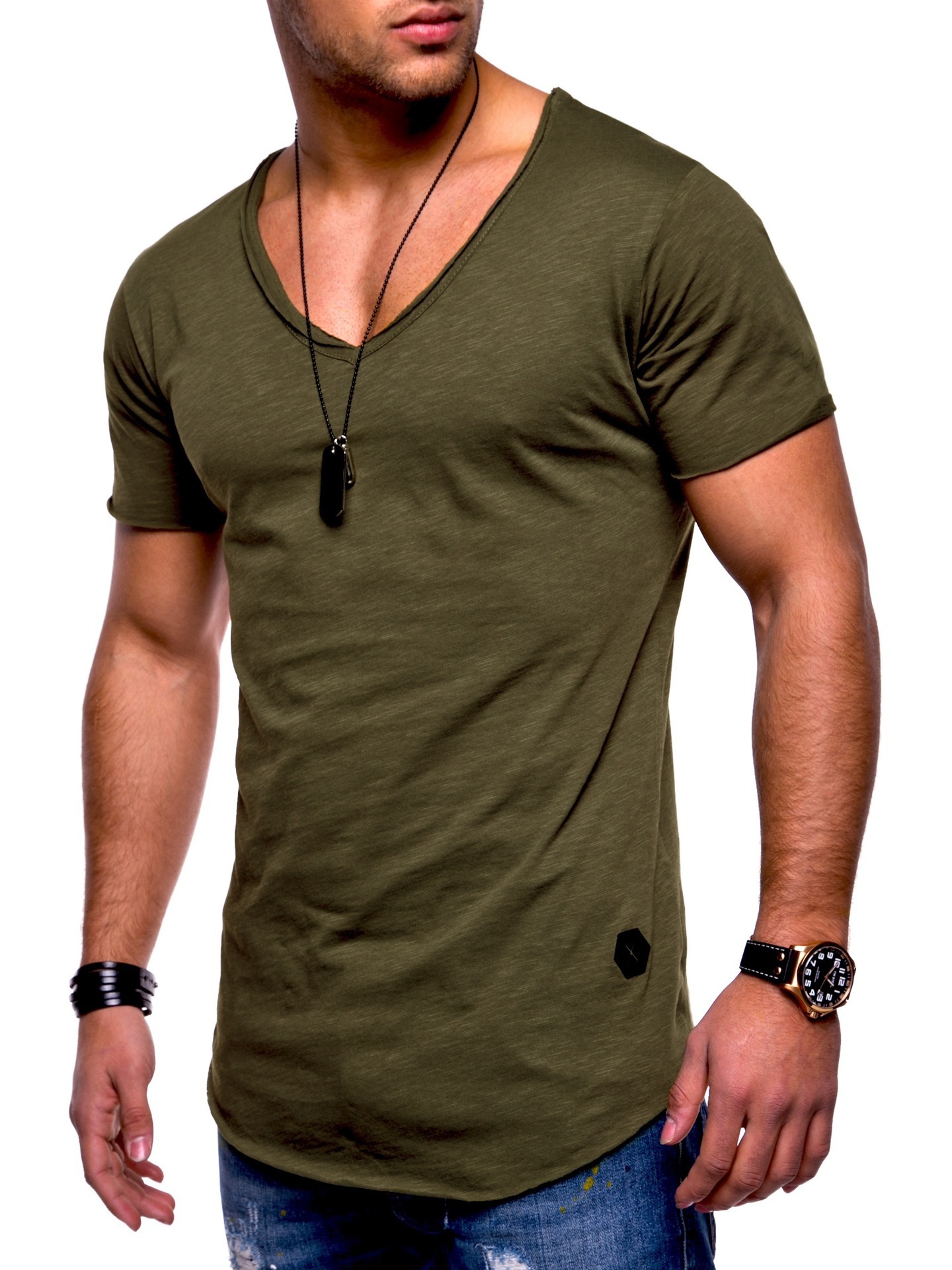 Главная страница > Новая летняя мужская футболка для внешней торговли с короткими рукавами, повседневная мужская Однотонная футболка с V-образным вырезом для мужчин