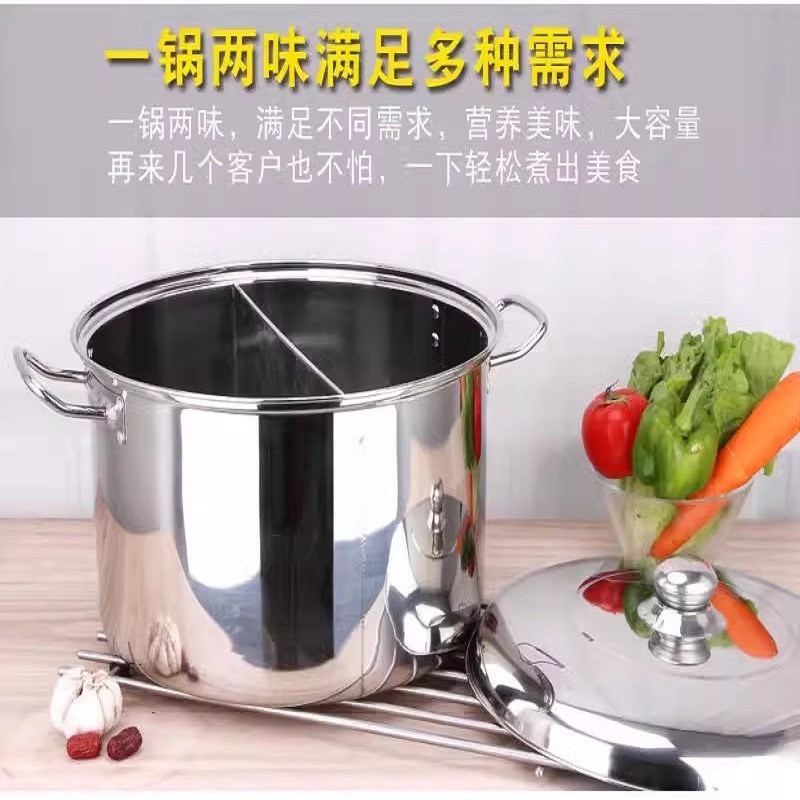 Главная страница > Кастрюля из нержавеющей стали с двумя отделениями, утолщенная кастрюля для супа, большая емкость для супа, кастрюля для двух вкусов, круглая раздельная кастрюля, для коммерческого использования, прямые продажи с завода, оптом