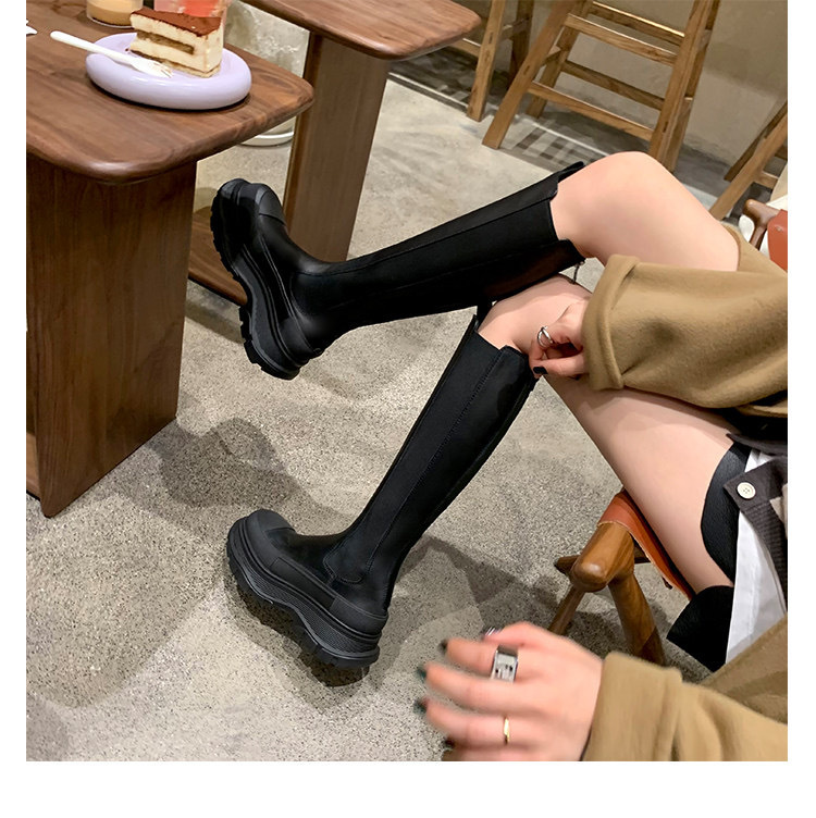 Главная страница > Высококачественные рыцарские ботинки из воловьей кожи, стройнящие, с высоким берцем, женские маленькие сапоги до колен на толстой подошве, увеличивающие рост