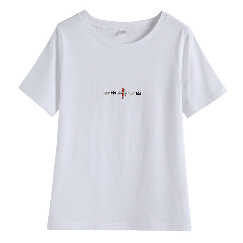Главная страница > Хлопковый Летний Новый Белый Топ, женская футболка с короткими рукавами, нижняя рубашка, свободная вышитая буква, в Корейском стиле, студенческая мода, ins