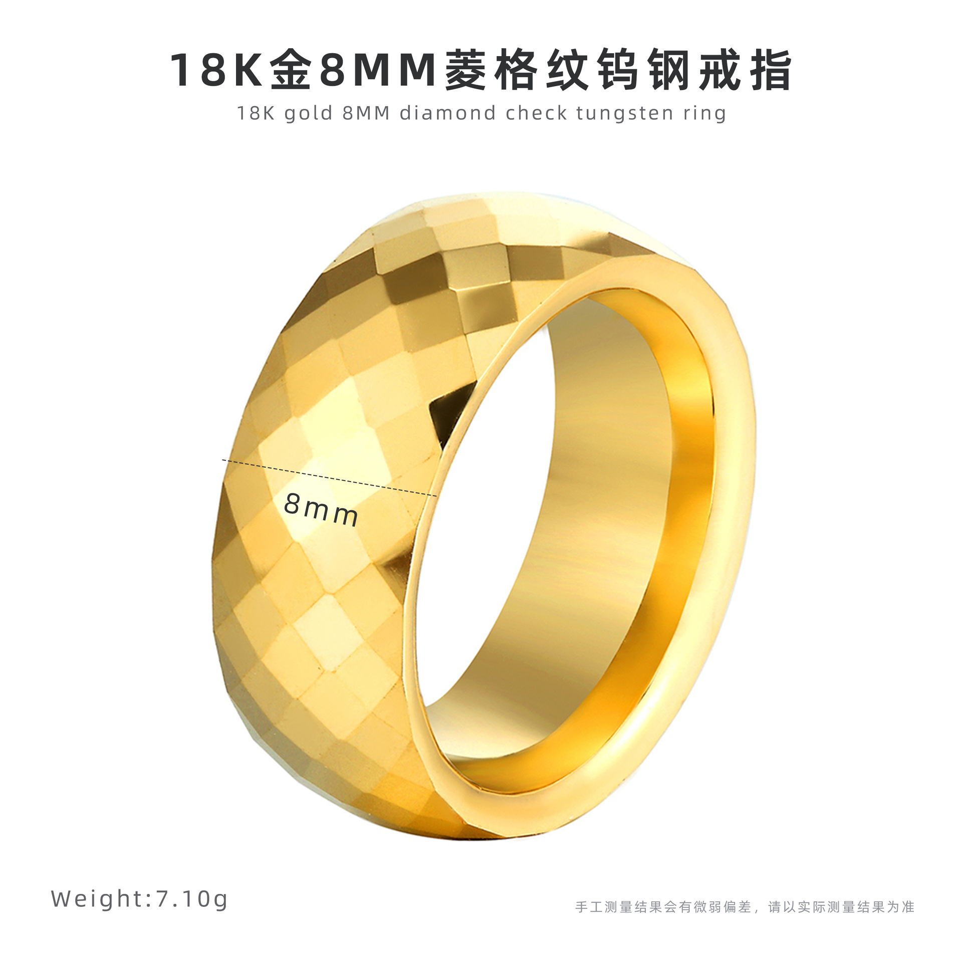 18-каратное золотое 8 мм кольцо из вольфрамовой стали