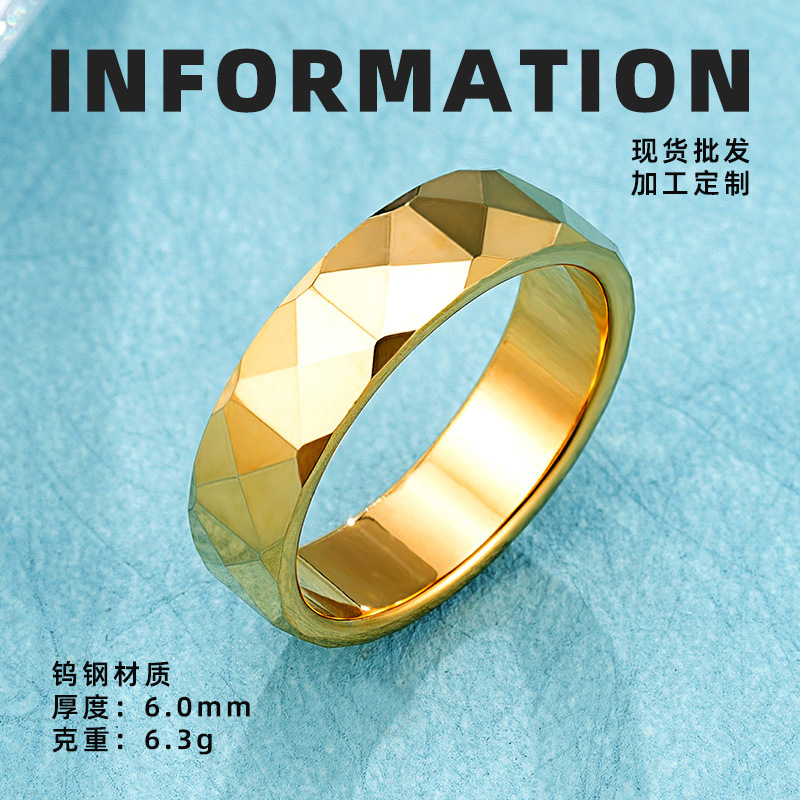 Европейские и американские обрезанные вольфрамовые кольца из вольфрамовой стали мужские золотые кольца не выцветают