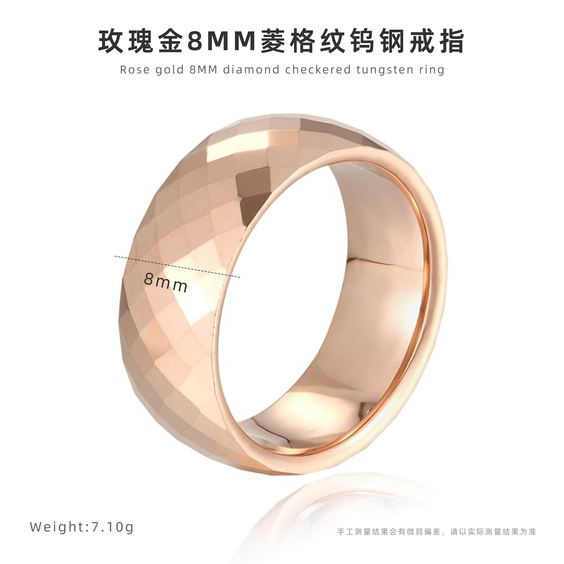 Кольцо из вольфрамовой стали из розового золота 8 мм