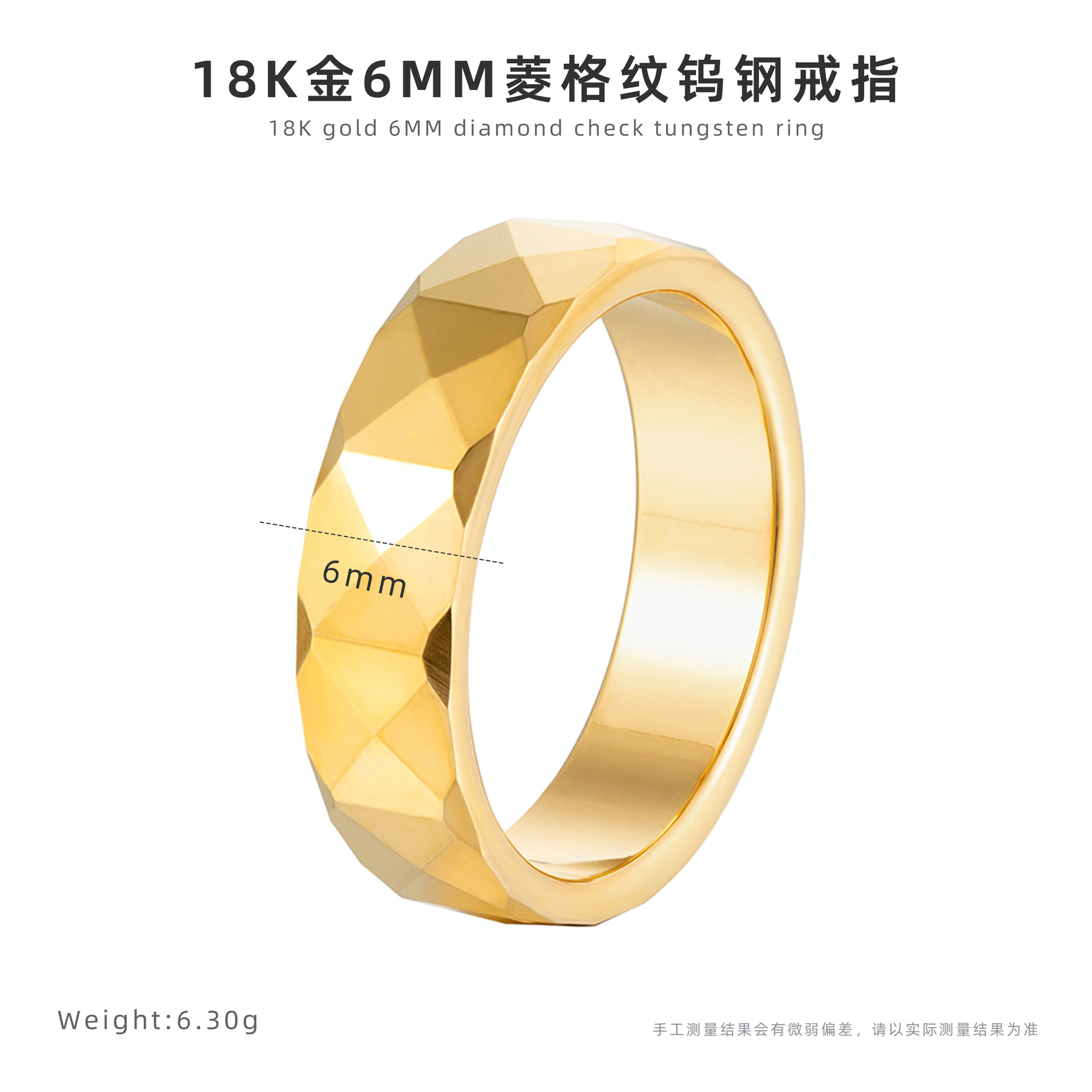 18-каратное золото 6 мм кольцо из вольфрамовой стали