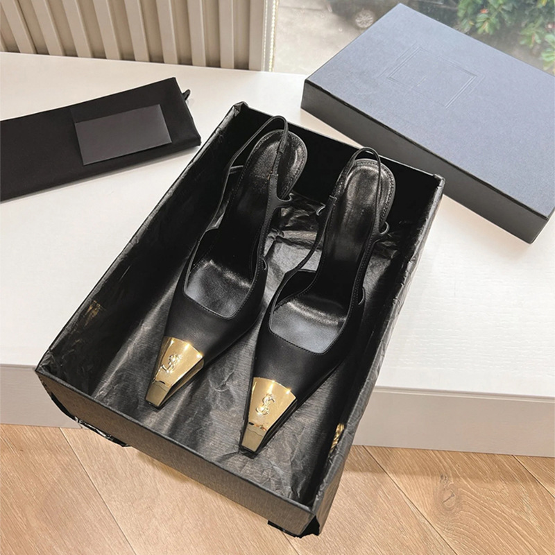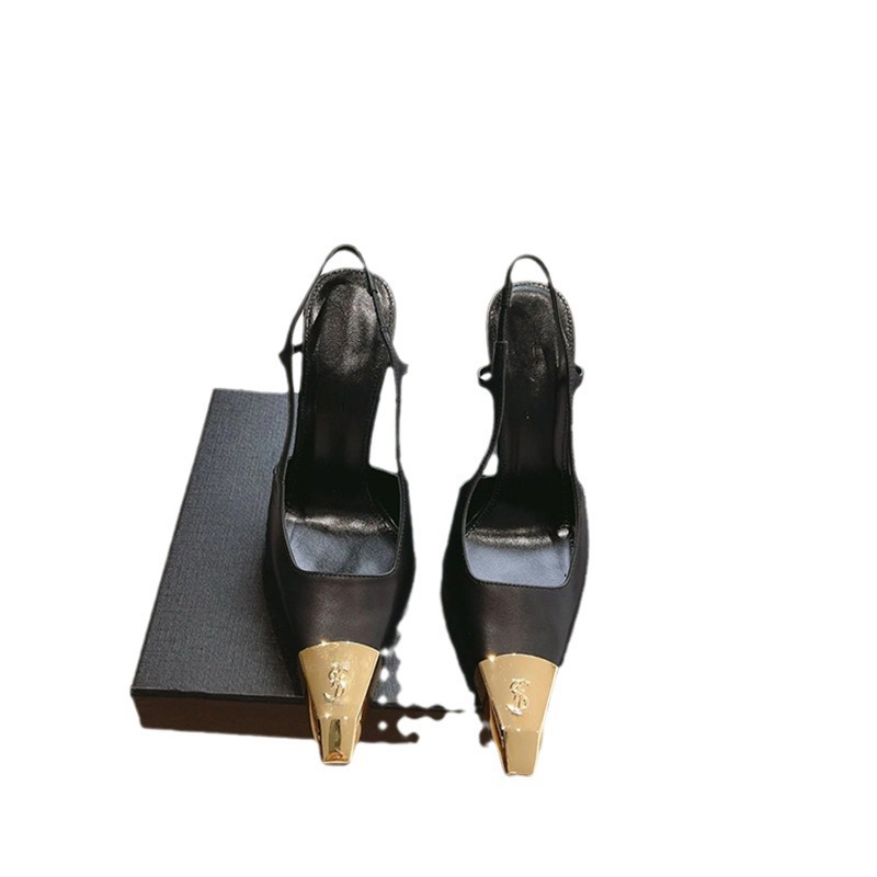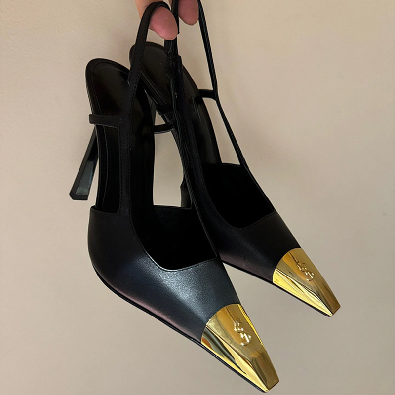 2024 Ранняя осень новый подиум на высоких каблуках золотой металлический каблук с тонким каблуком и неглубоким заостренным задним пустым одиночным ботинком для женщин