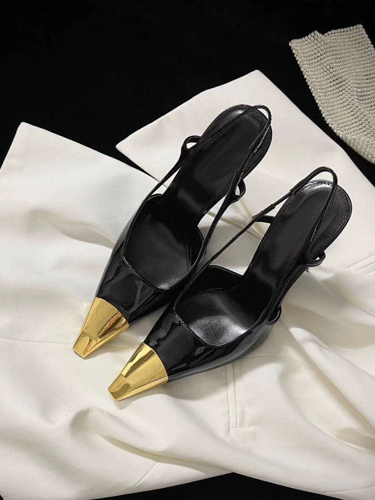 Главная страница > 2024 Ранняя осень новый подиум на высоких каблуках золотой металлический каблук с тонким каблуком и неглубоким заостренным задним пустым одиночным ботинком для женщин
