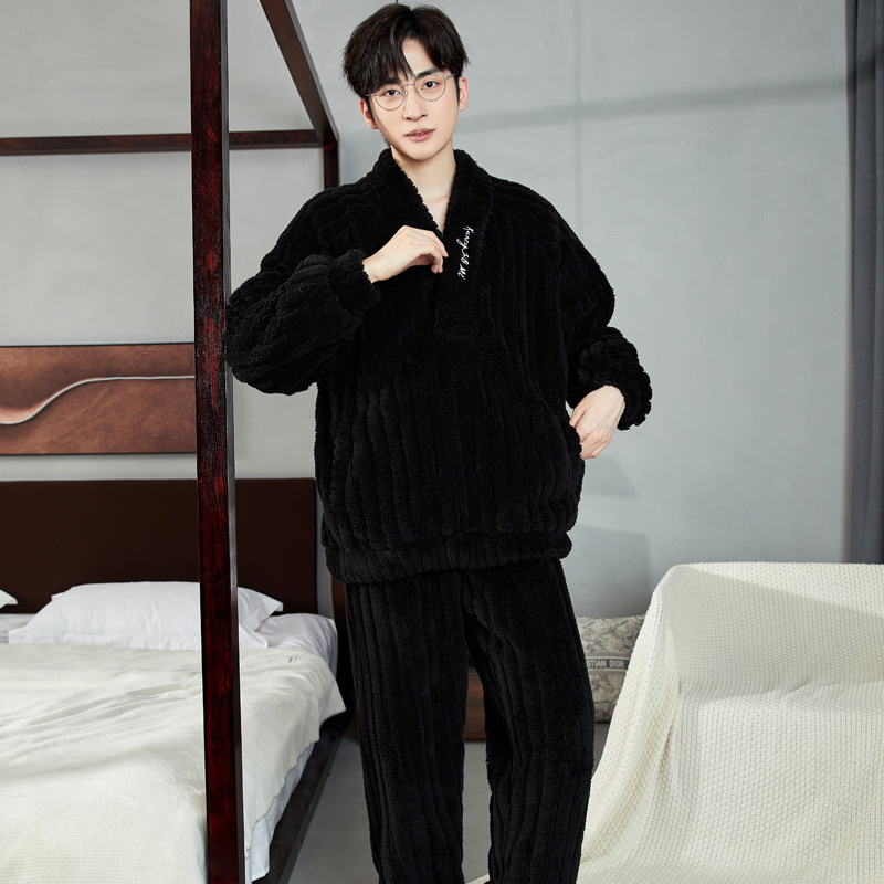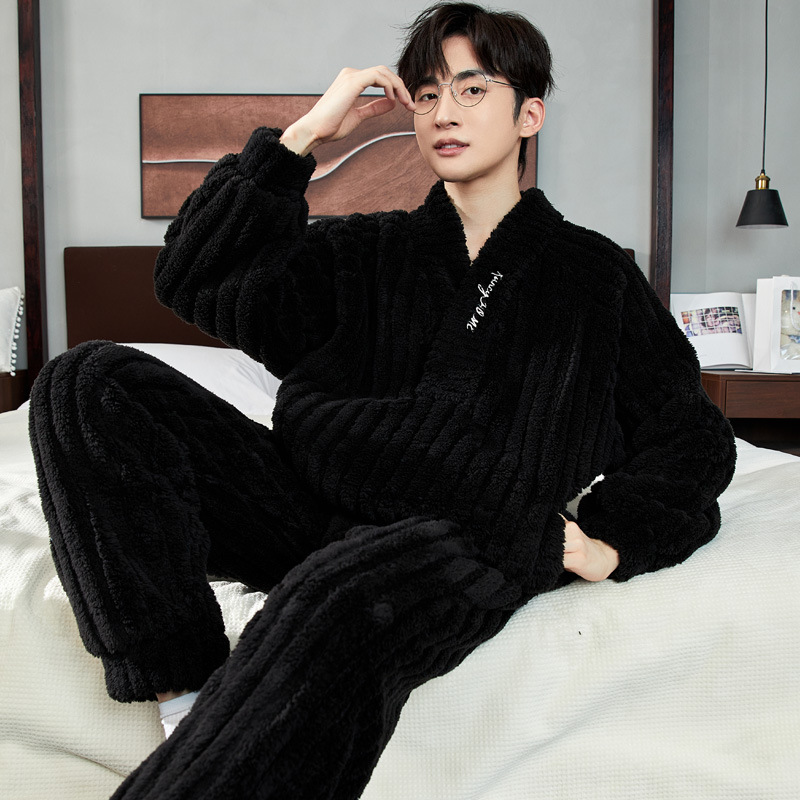 Главная страница > Мужская Пижама осенне-зимняя Коралловая бархатная утолщенная теплая и свободная японская зимняя фланелевая Домашняя одежда с длинным рукавом костюм