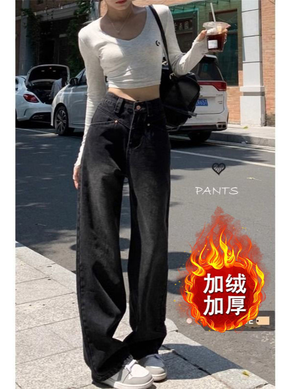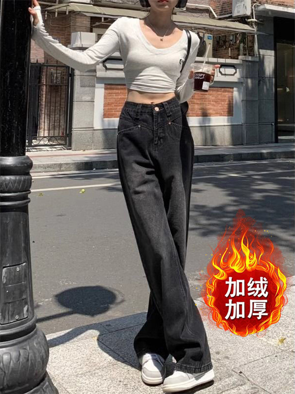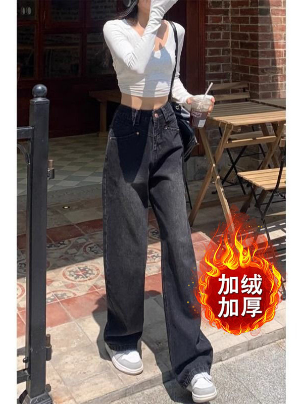 Главная страница > Черные бархатные толстые джинсы с высокой талией женские осенние и зимние новые рыхлые тонкие дикие прямые широкие брюки