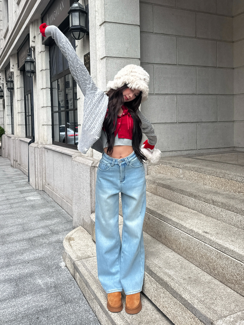 Главная страница > GAGD анти-сезонные светло-голубые стирание прямые джинсы плюс бархатные джинсы