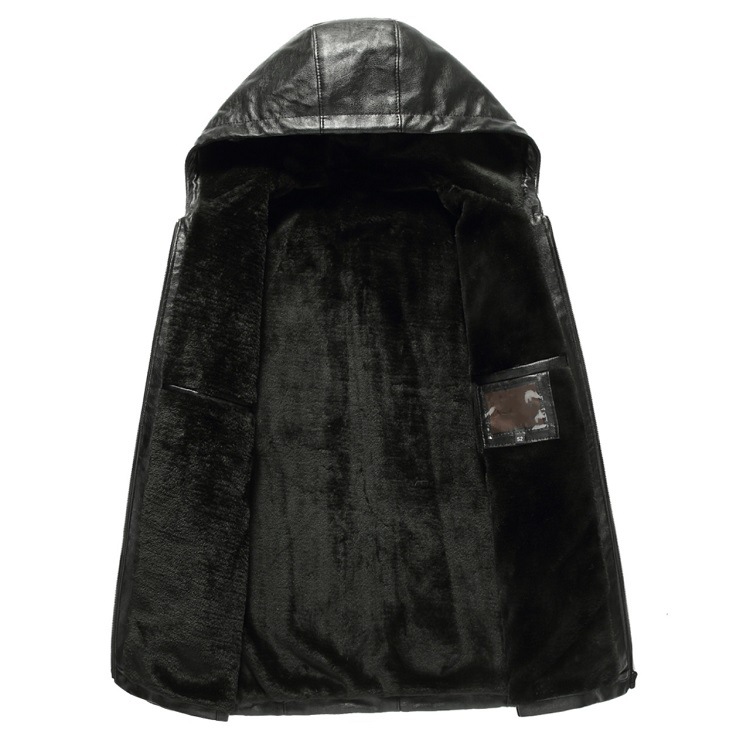 Главная страница > Мужская кожаная куртка с капюшоном и бархатом и утолщением, зрелая зимняя короткая красивая куртка для папы среднего и пожилого возраста Haining