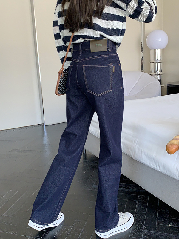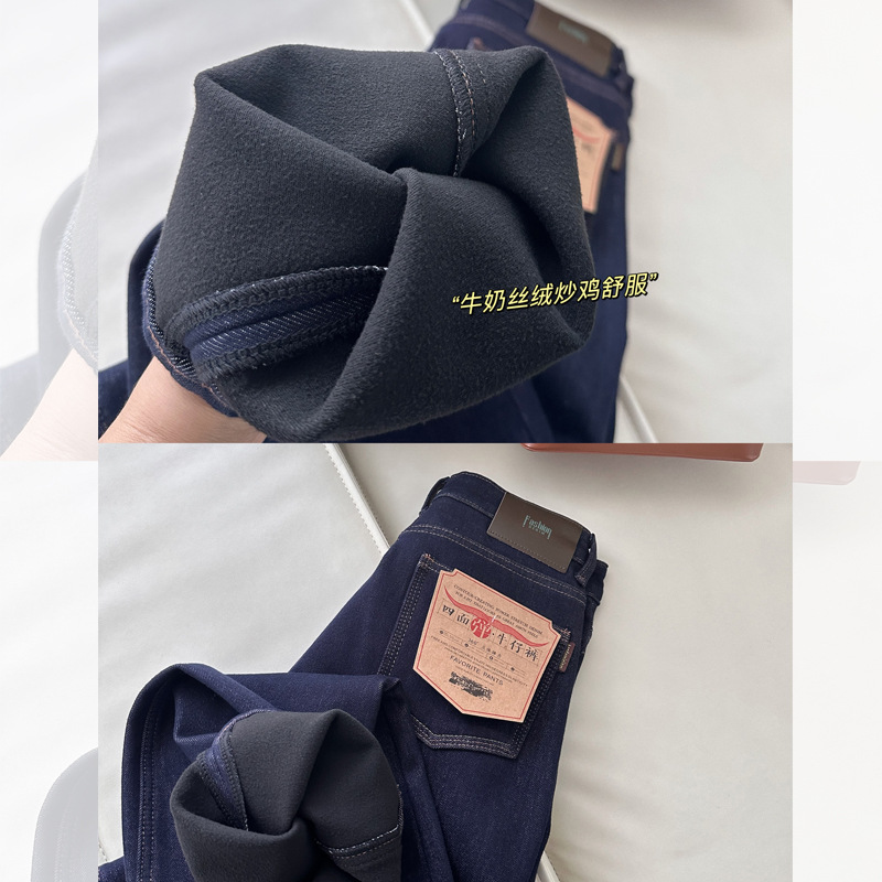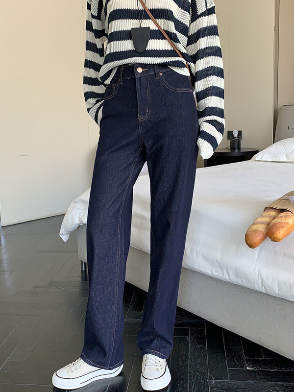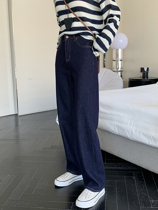 Главная страница > Весна не поздно ~ Темно-синие узкие джинсы женский 2024 осень-зима плюс бархатный новый прямой стиль тонкие широкие брюки брюки