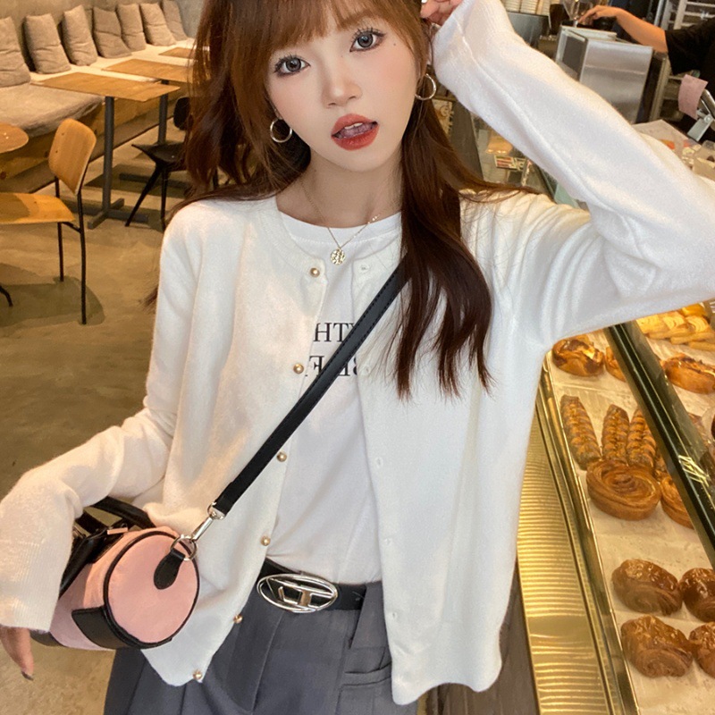 Белый вязаный кардиган для женщин, тонкий топ с юбкой на подтяжках, новинка ранней весны 2025 года, небольшой верхний свитер