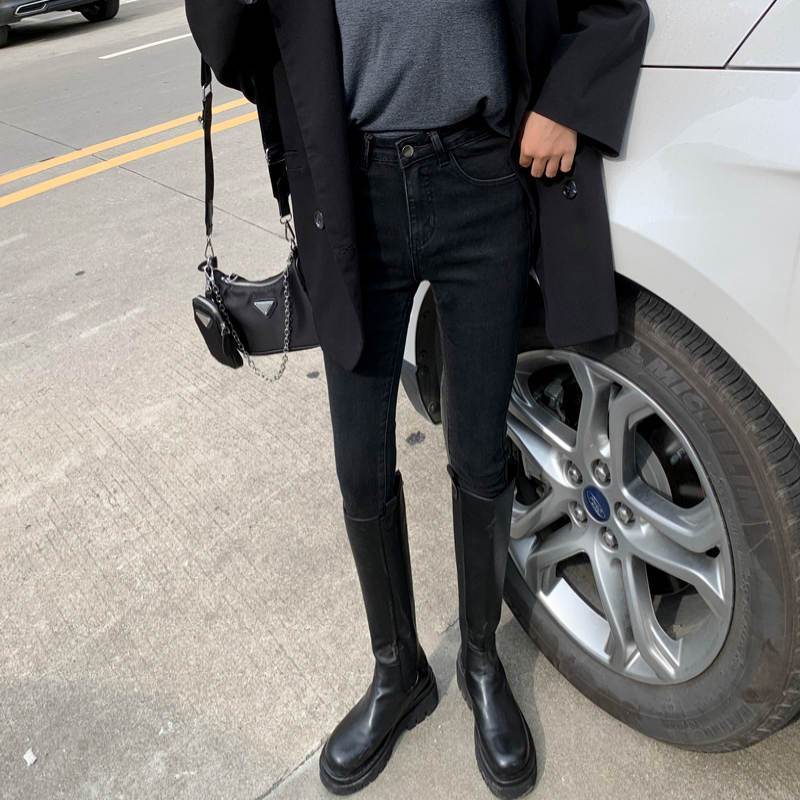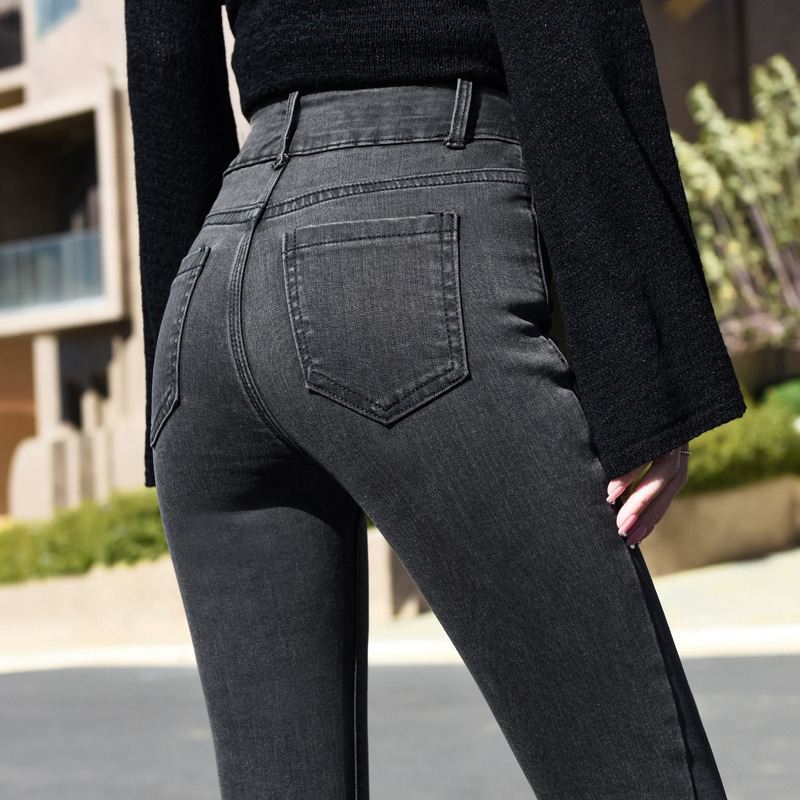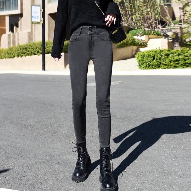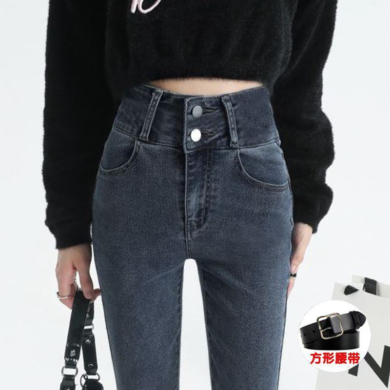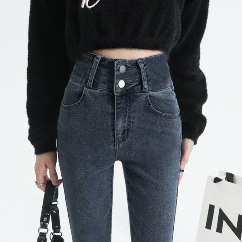 Главная страница > Джинсы с высокой талией женские маленькие ножки весна и осень 2023 новые синие серые приталенные узкие эластичные брюки-карандаш