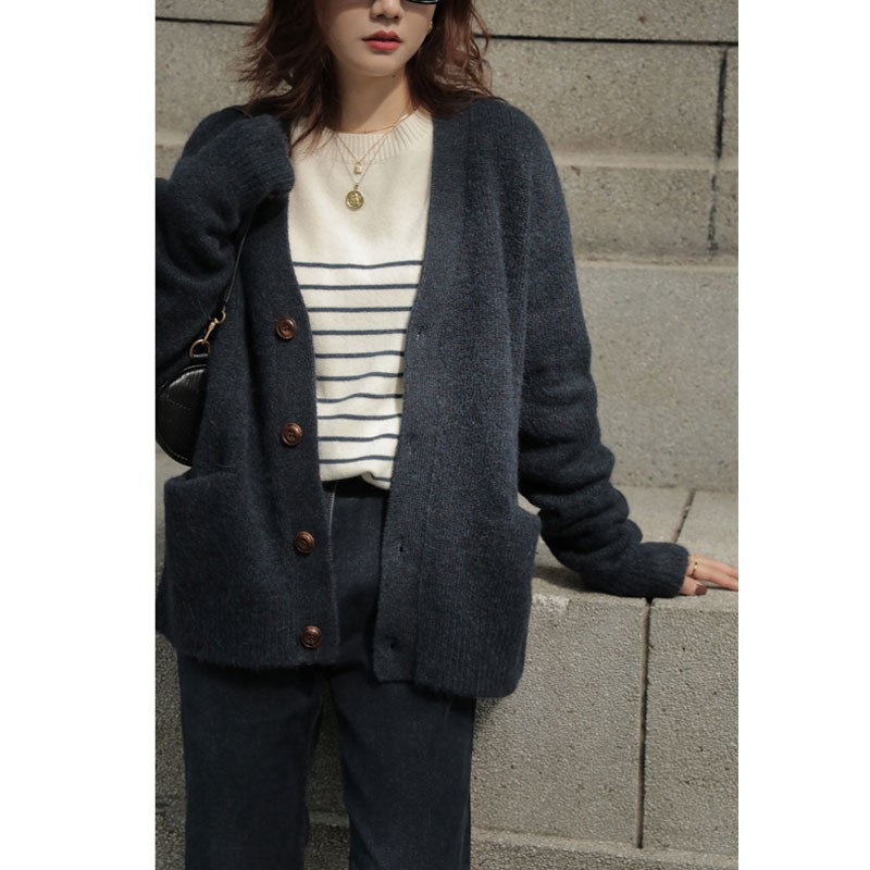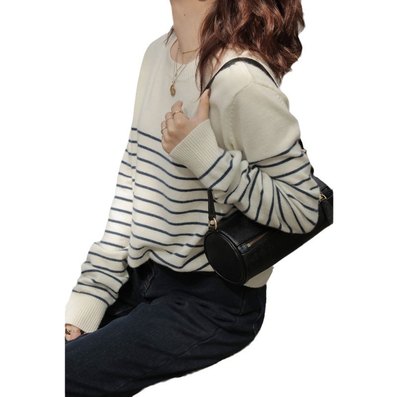 Главная страница > Новый женский свитер из чистой шерсти Осень/Зима 2025, в корейском стиле, с круглым вырезом, в полоску, свободный кашемировый трикотаж, базовый слой.